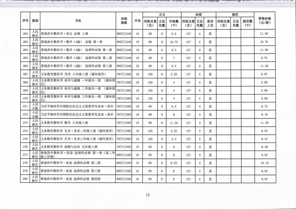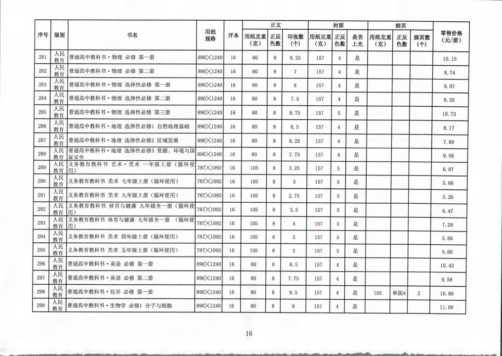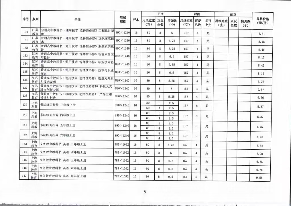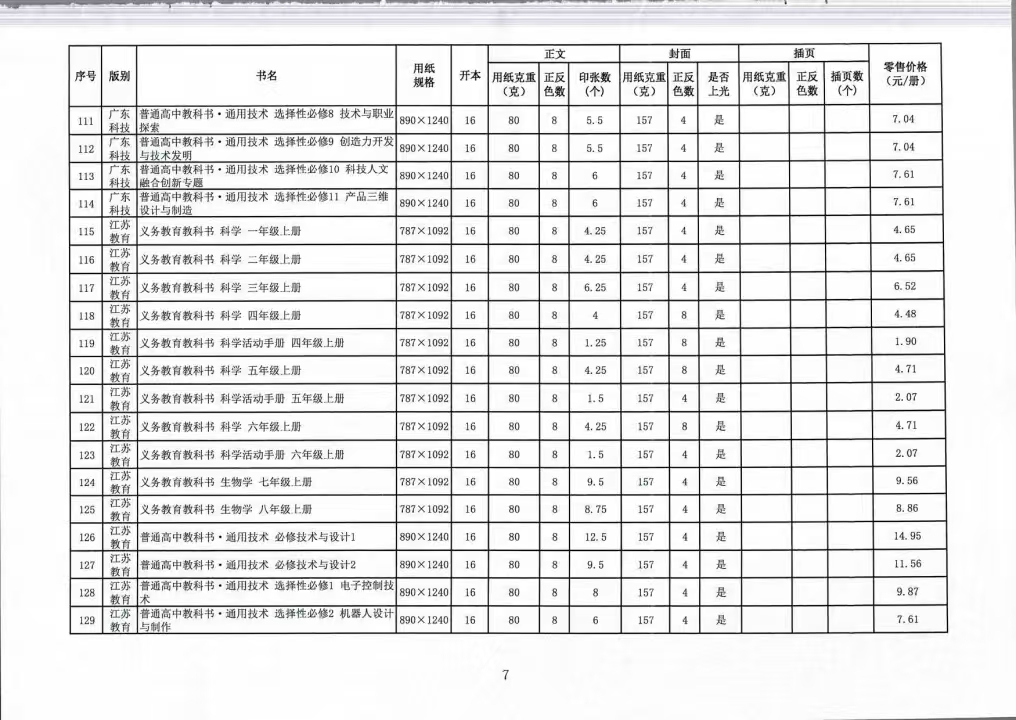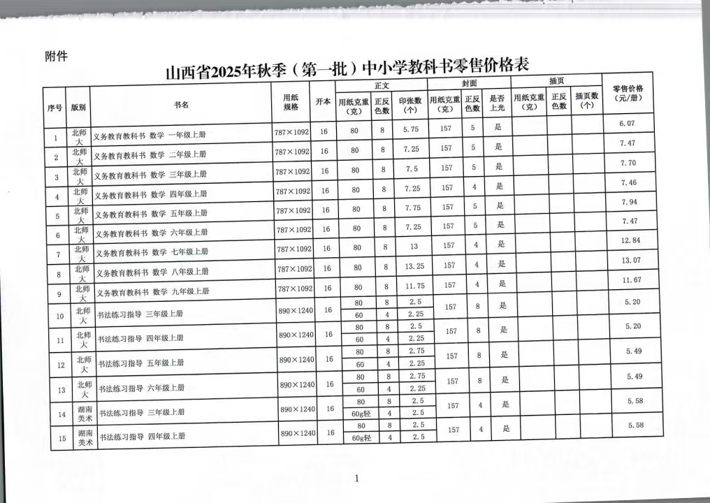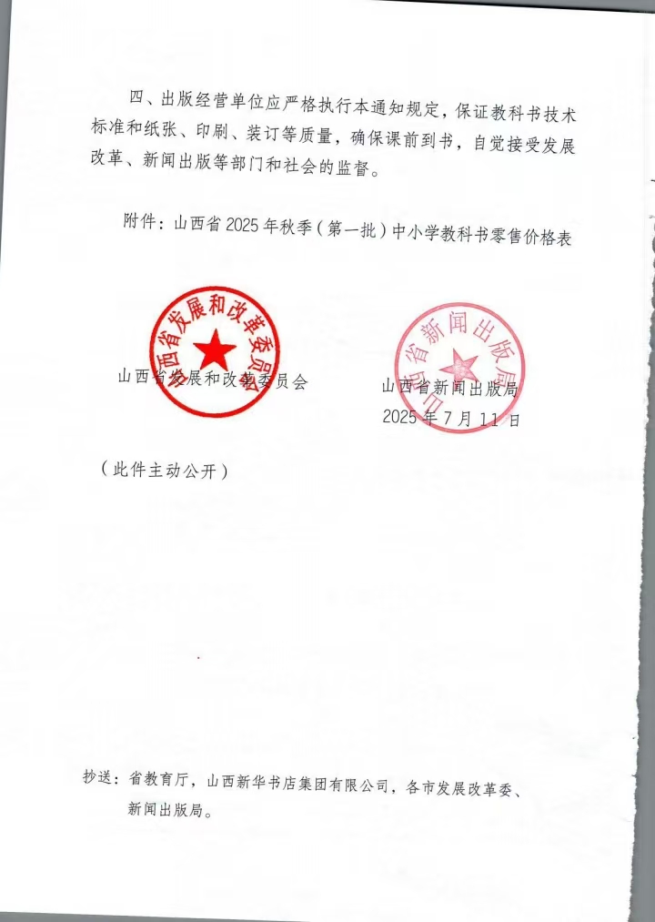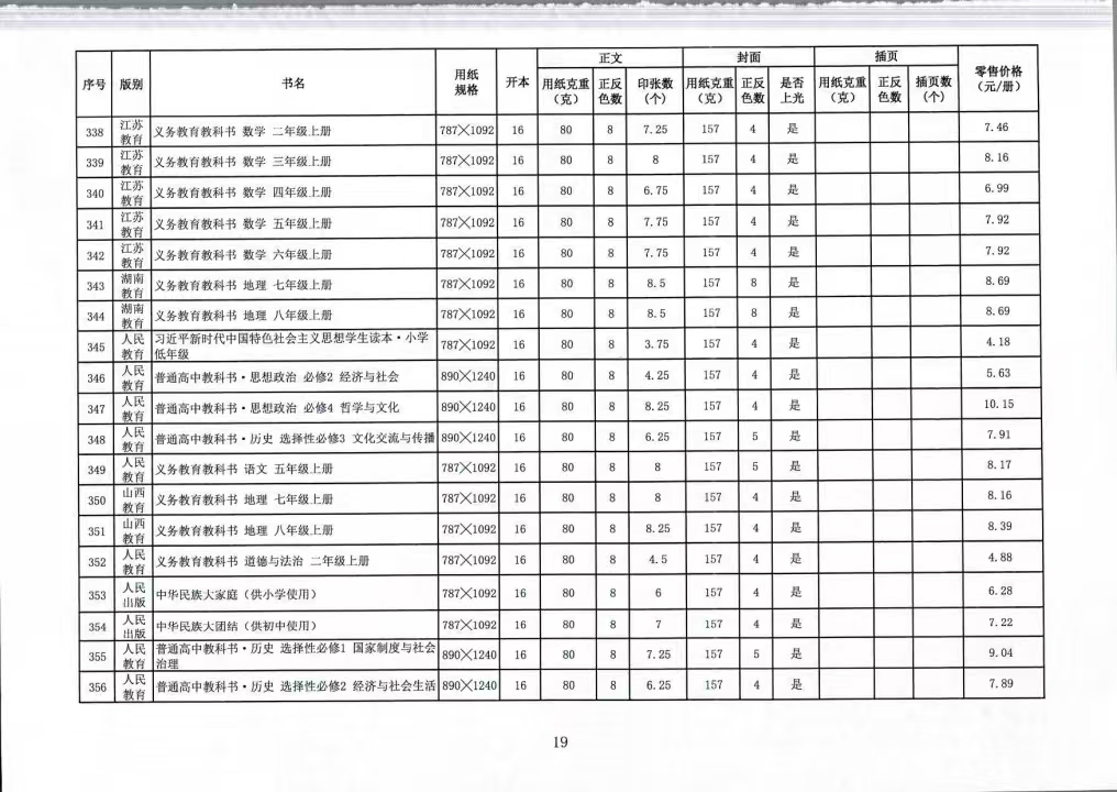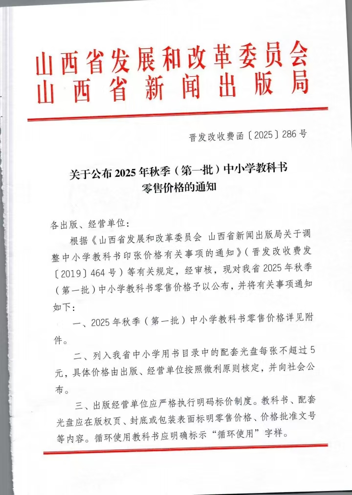 关于公布2025年秋季(第一批)中小学教科书零售价格的通知