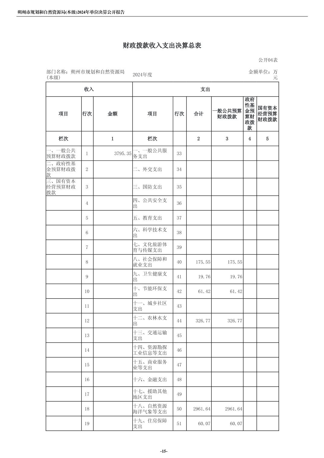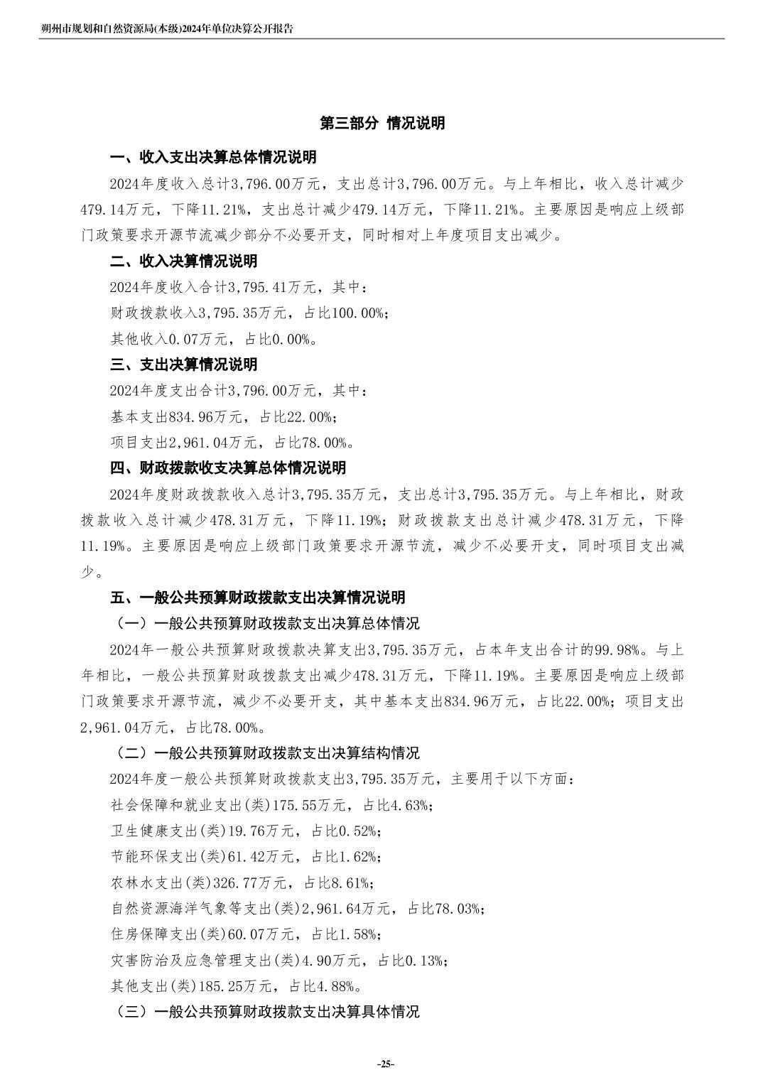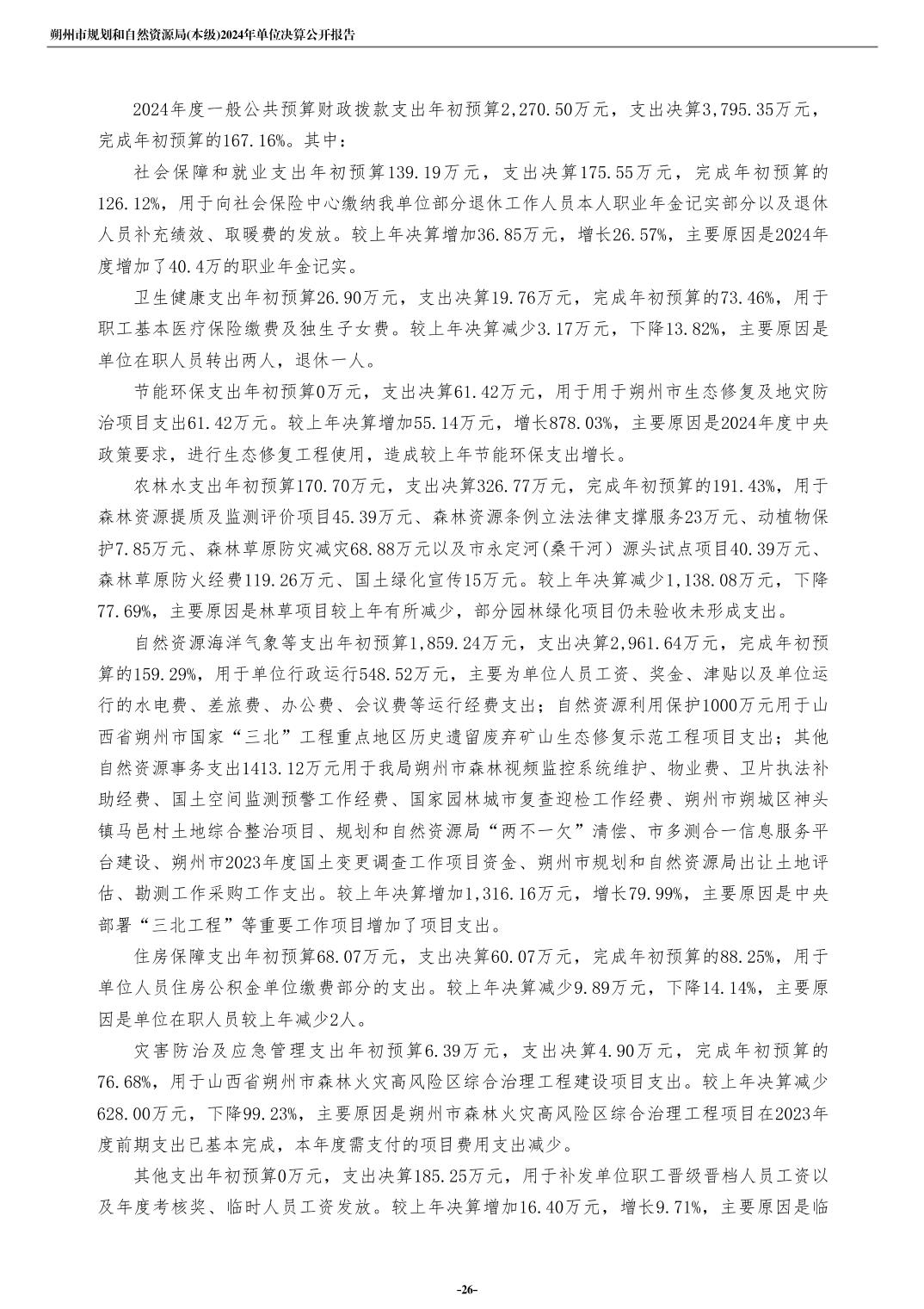 朔州市规划和自然资源局(本级)2024年度单位决算公开