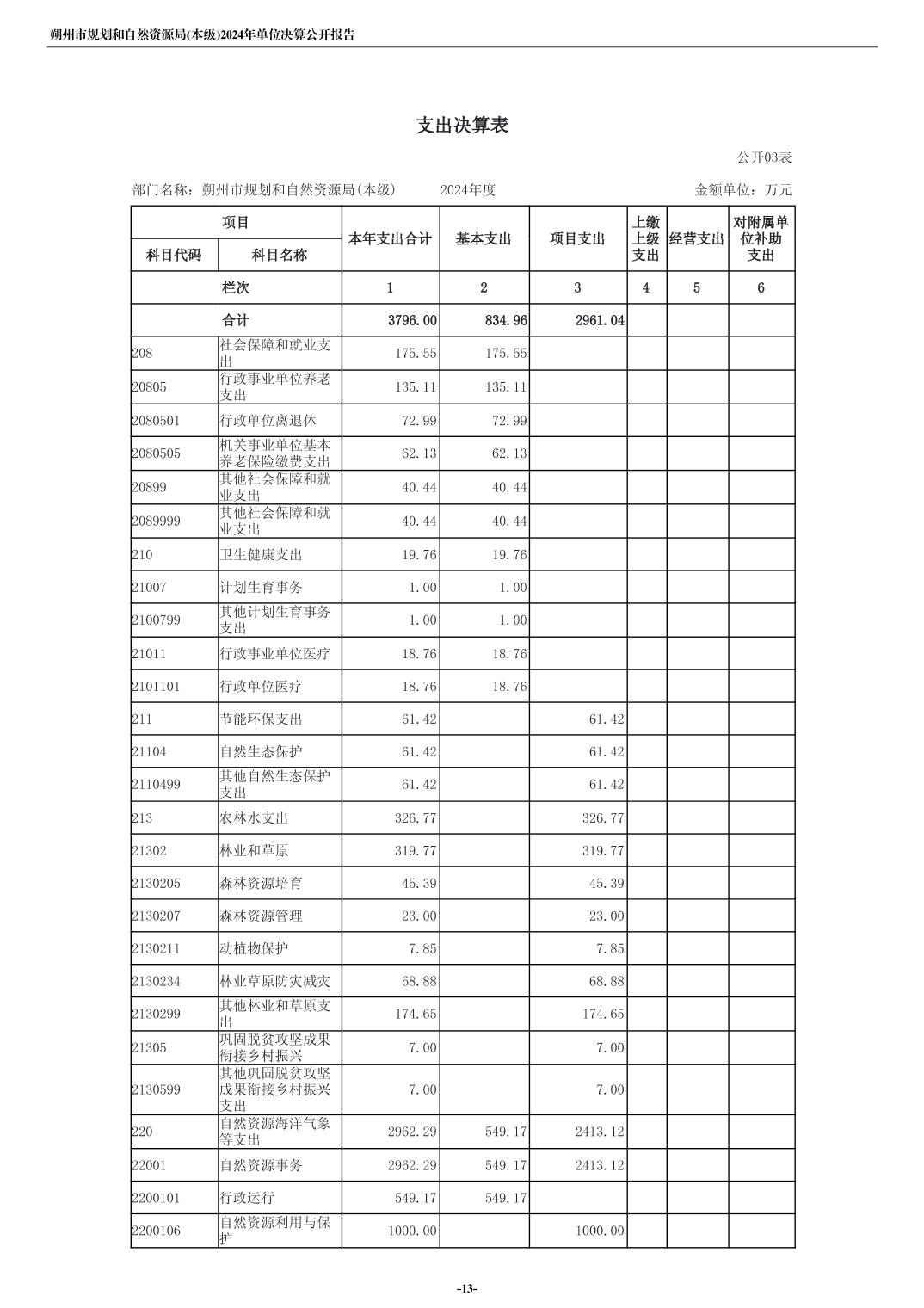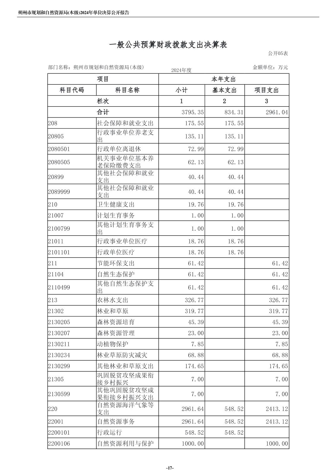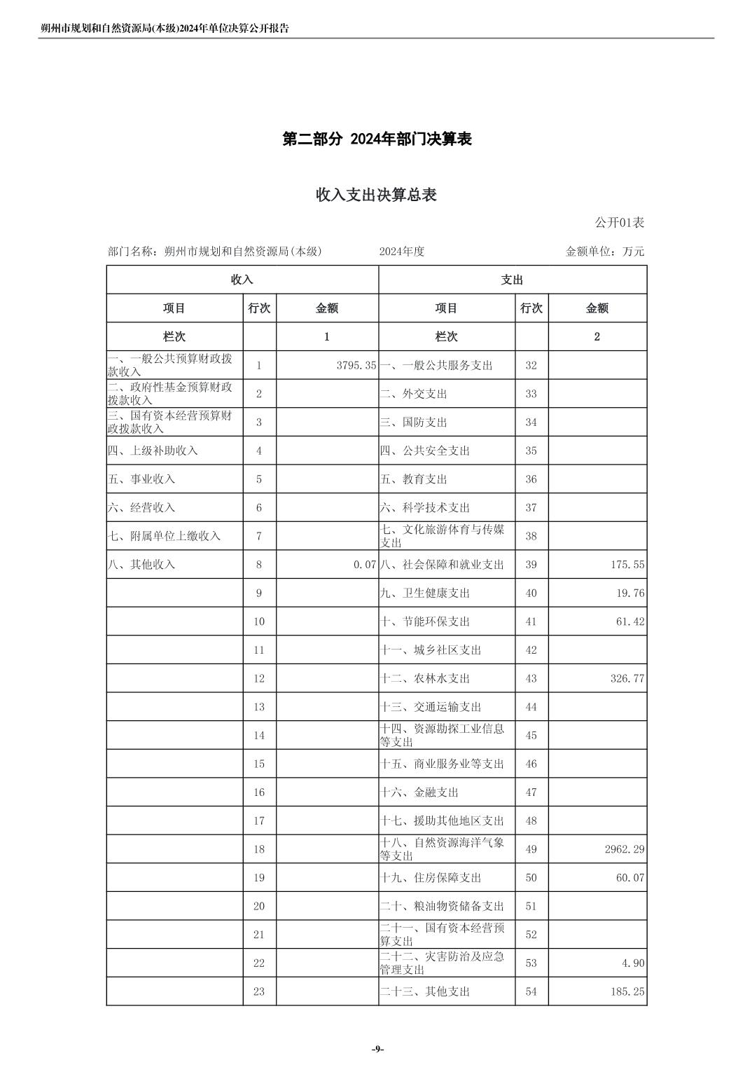 朔州市规划和自然资源局(本级)2024年度单位决算公开