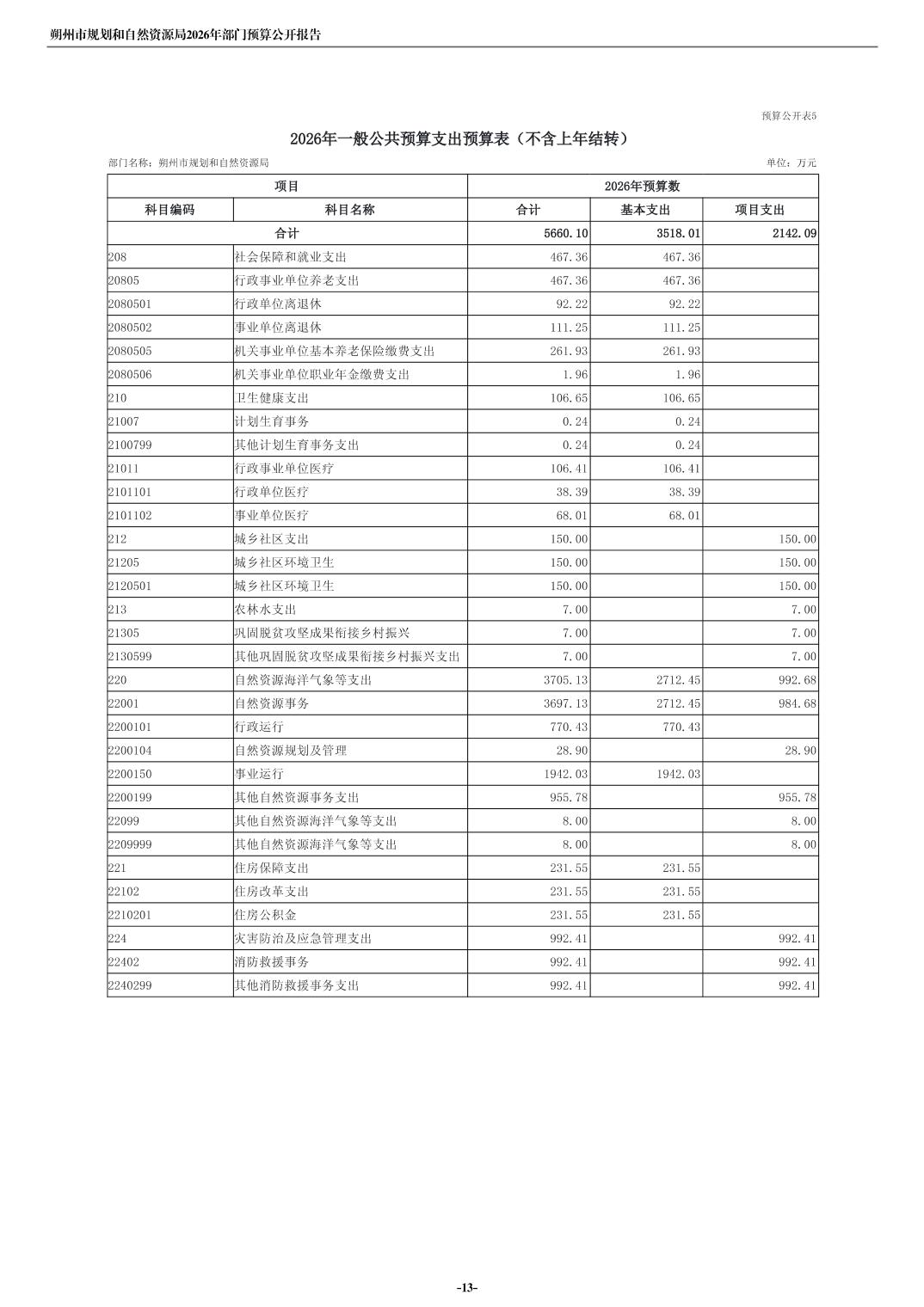 朔州市规划和自然资源局2026年度部门预算公开