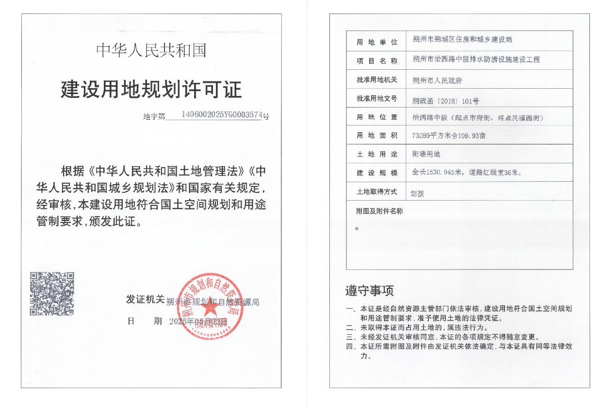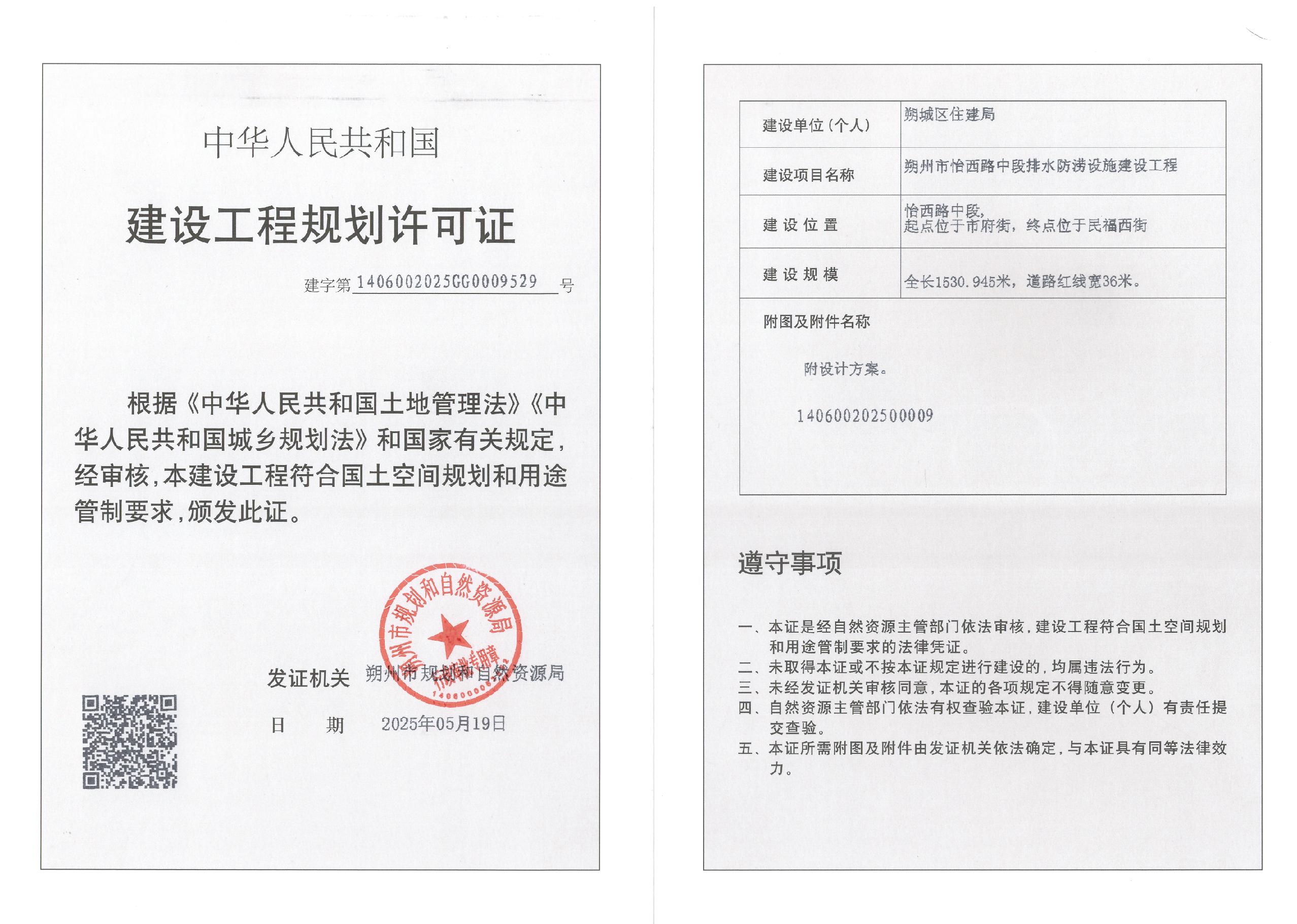 朔州市怡西路中段排水防涝设施建设工程规划许可批后发布