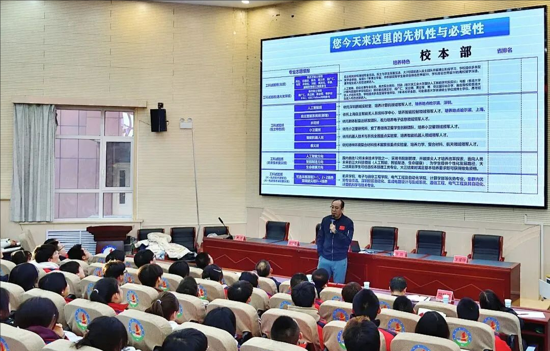 12月3日,哈尔滨工业大学博士生导师果崇申教授一行走进朔州市一中,以“科技报国启新程 百年学府育英才”为主题,为300余名高三师生带来一场融汇学术深度与青春理想的宣讲盛宴。