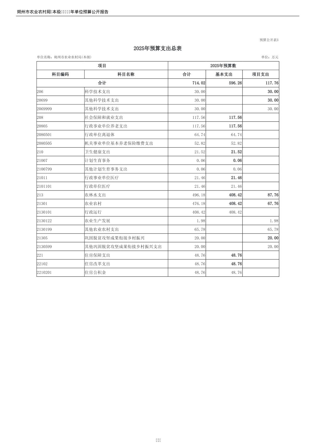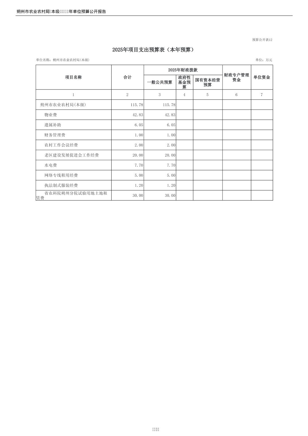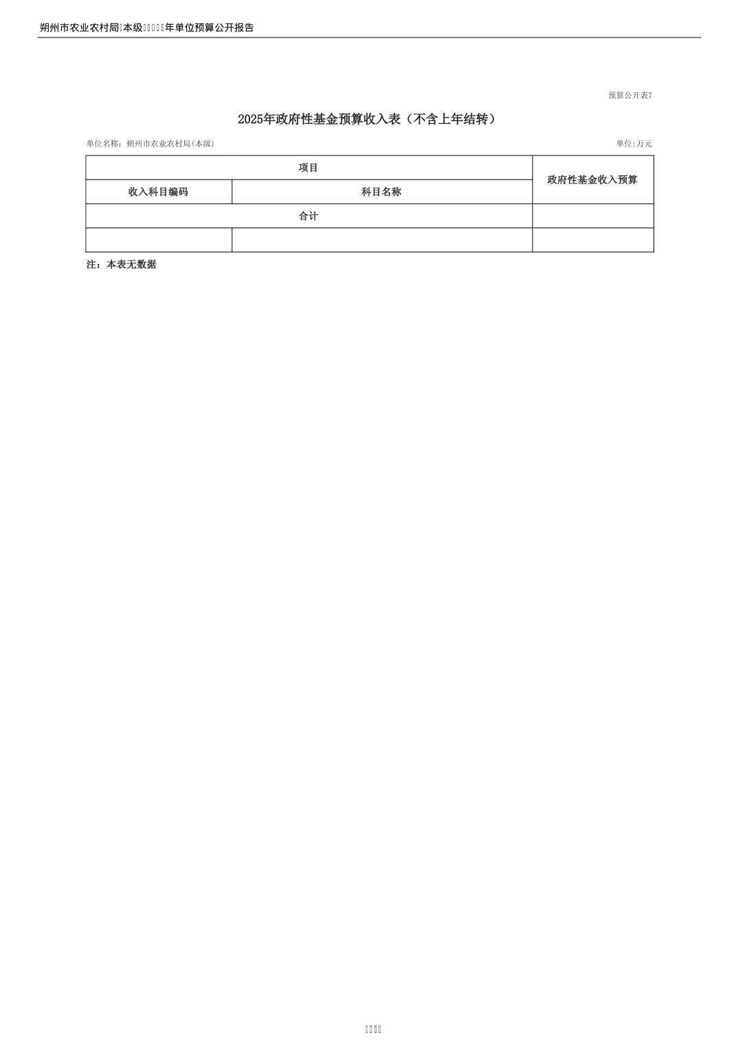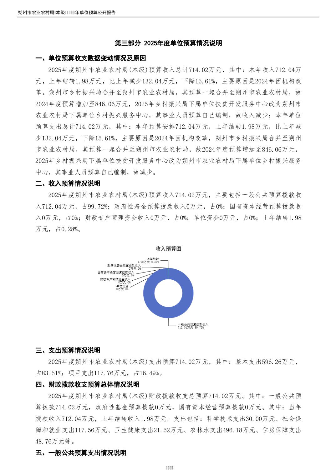 2025年朔州市农业农村局(本级)部门预算公开