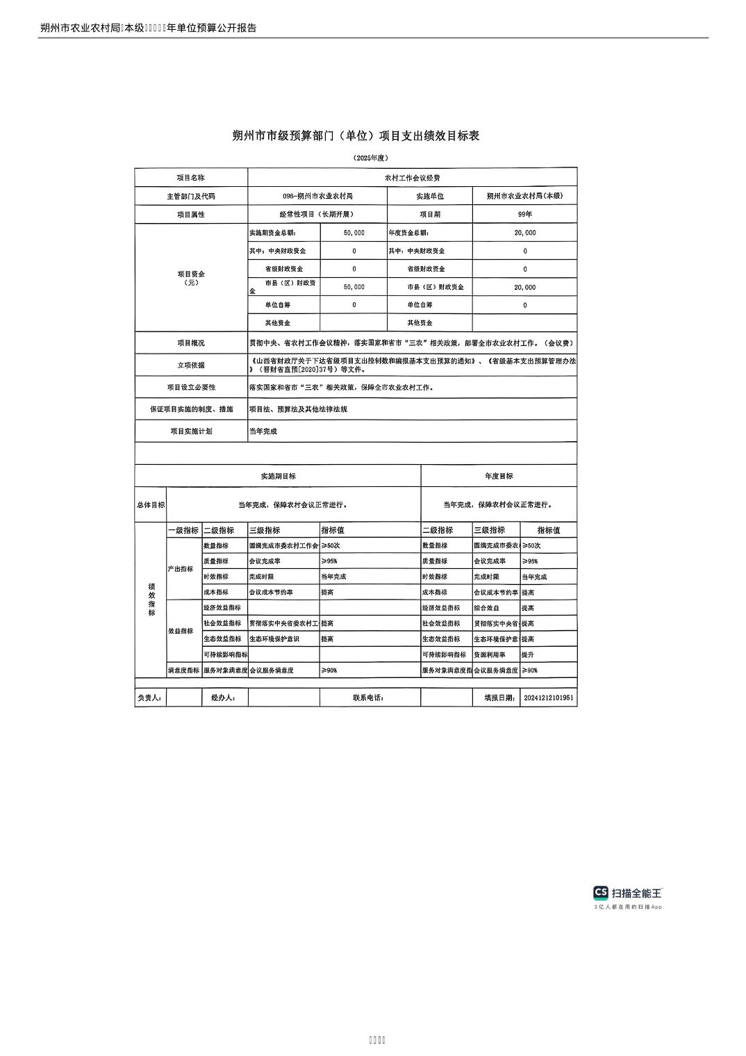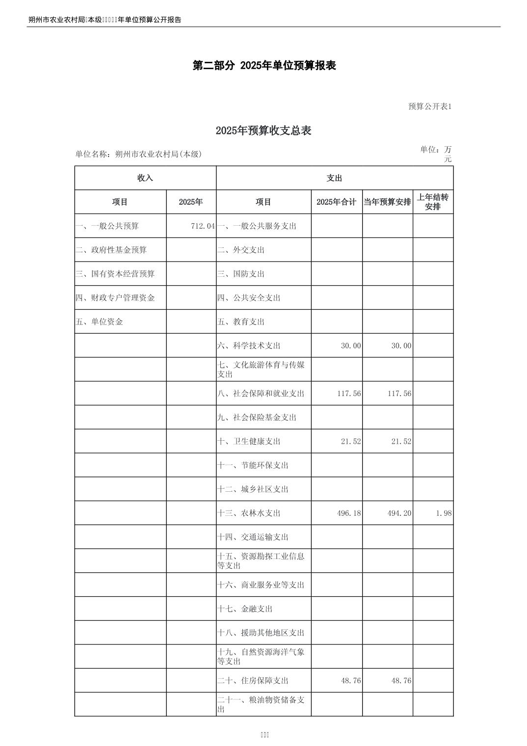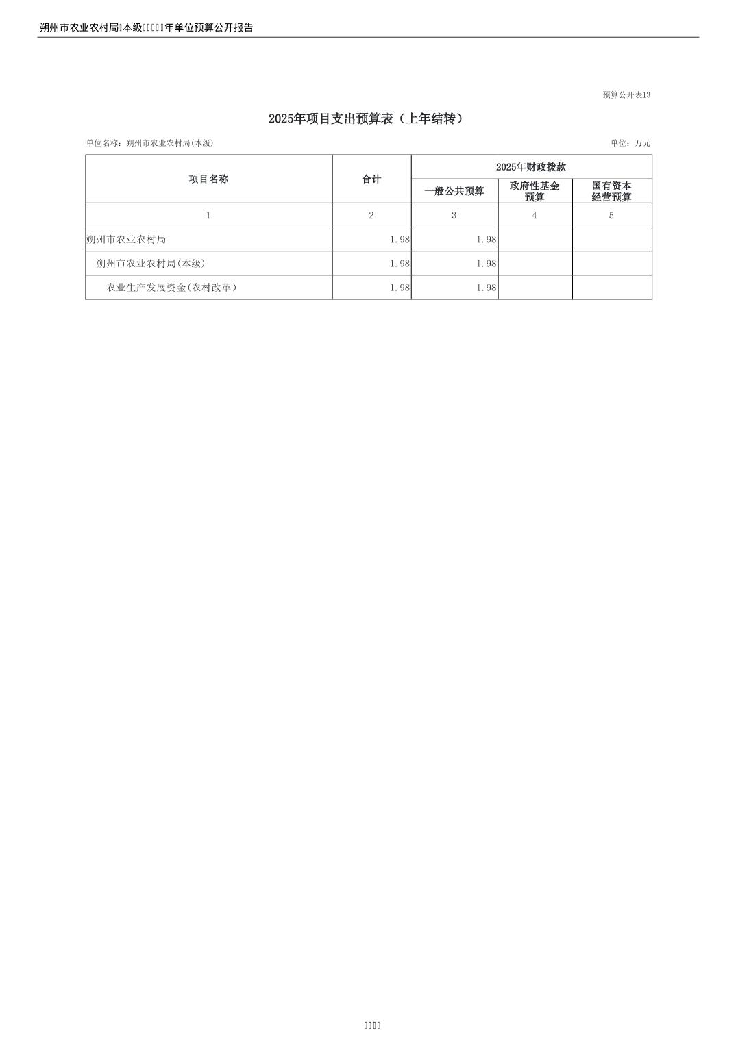 2025年朔州市农业农村局(本级)部门预算公开