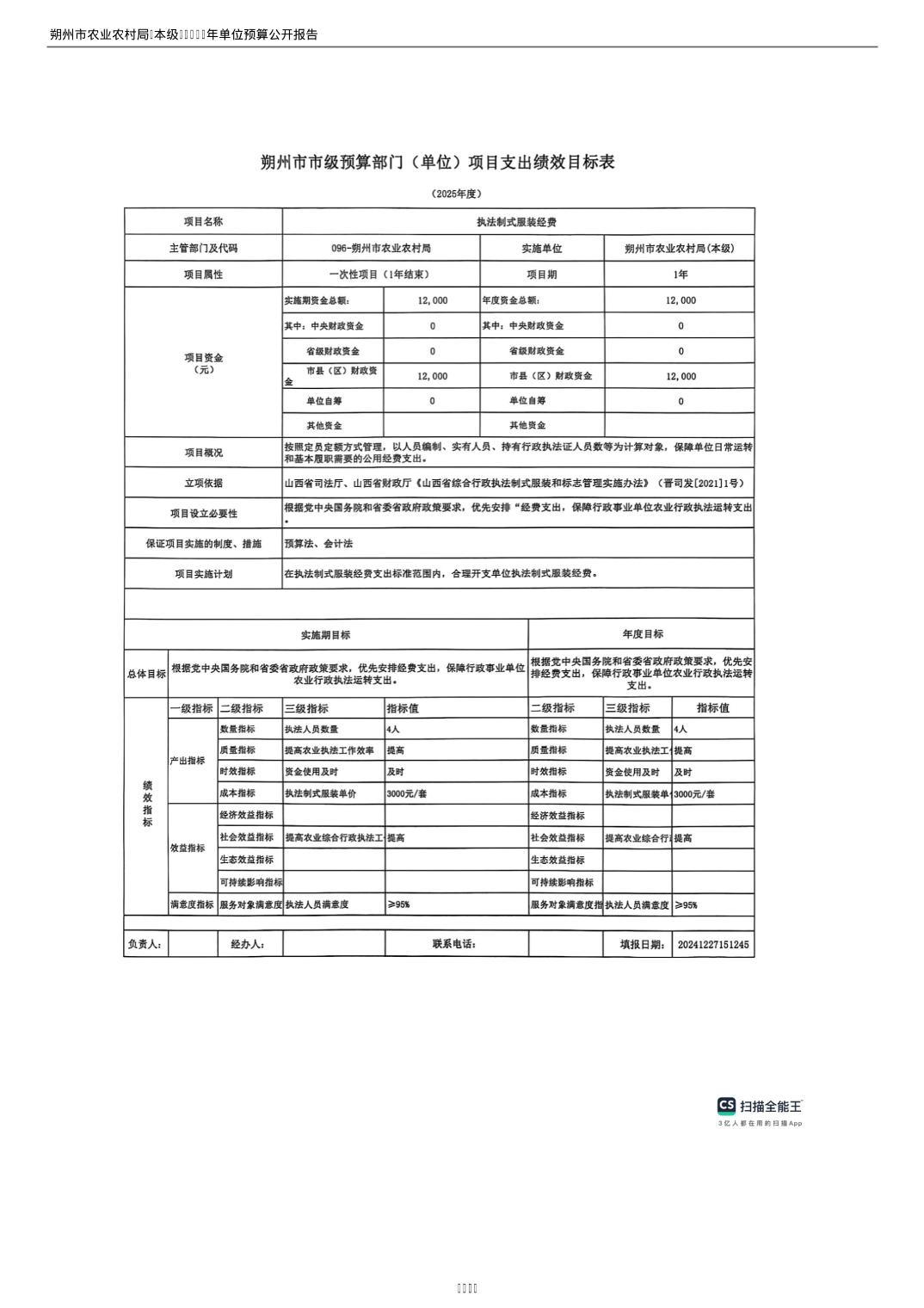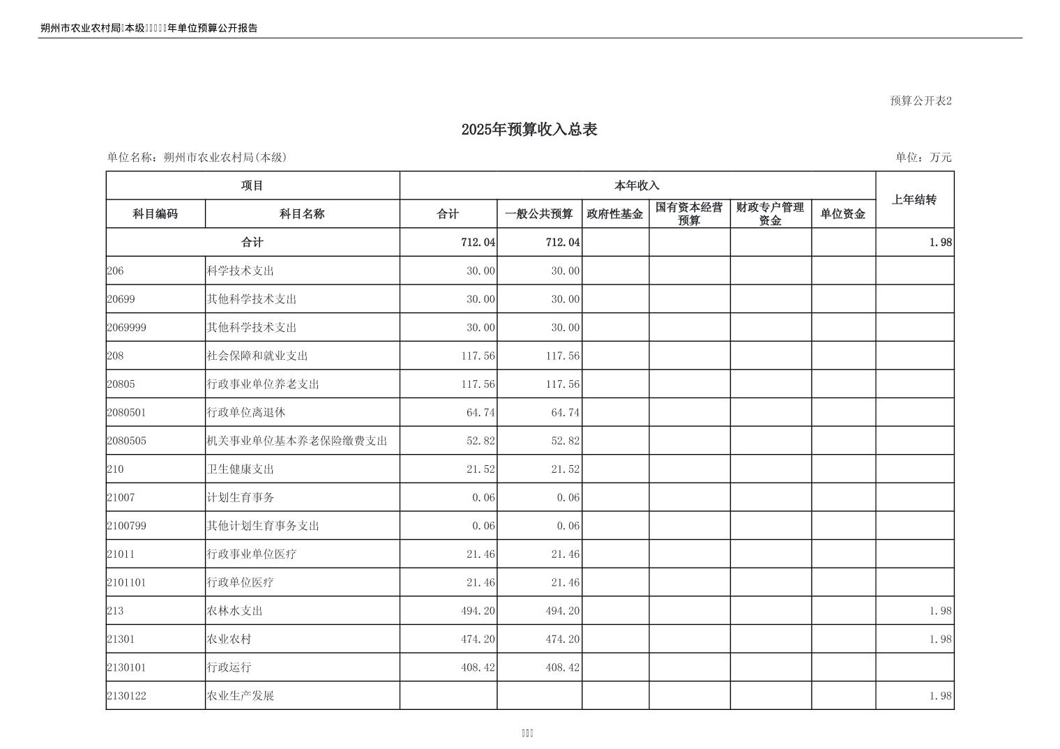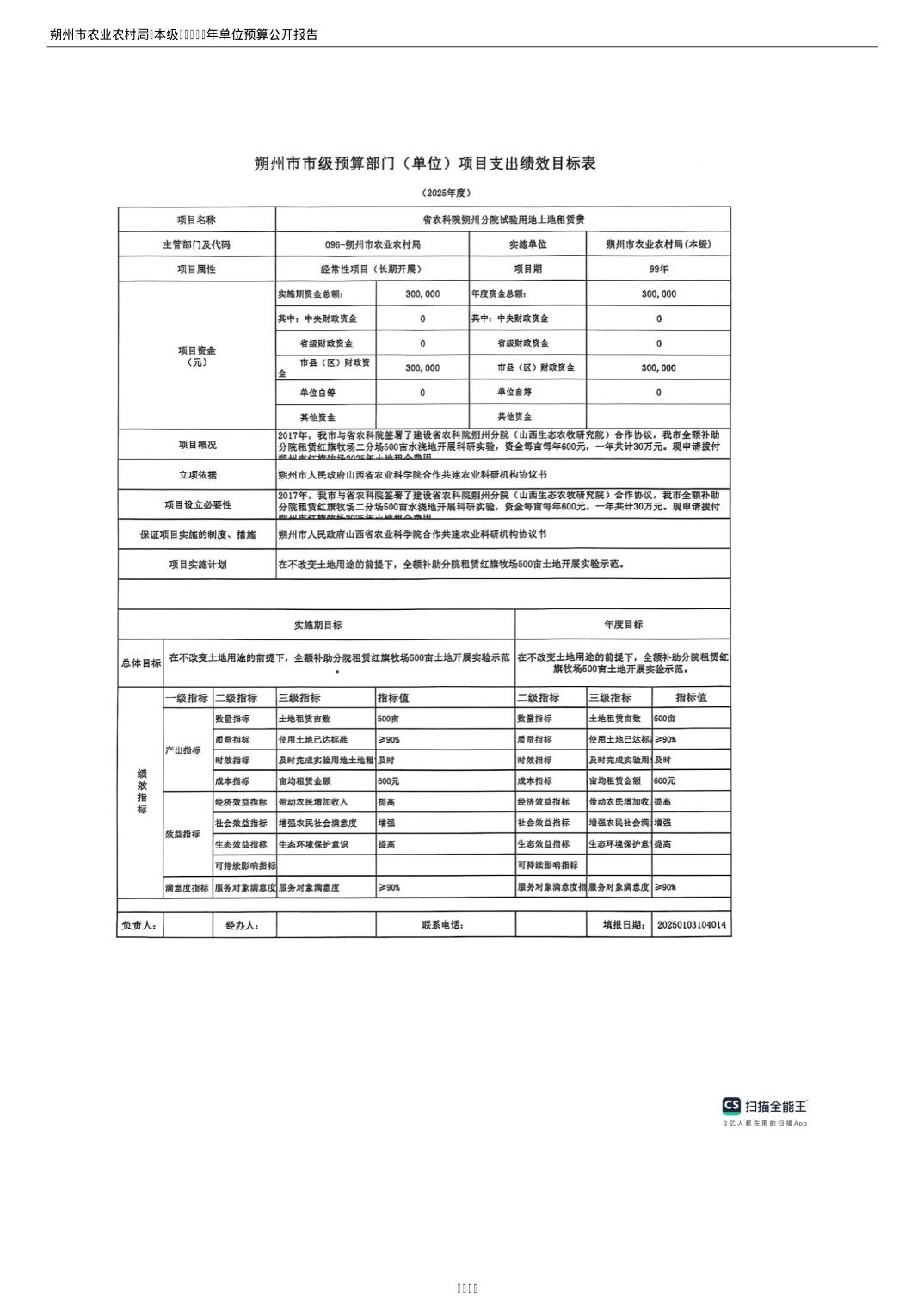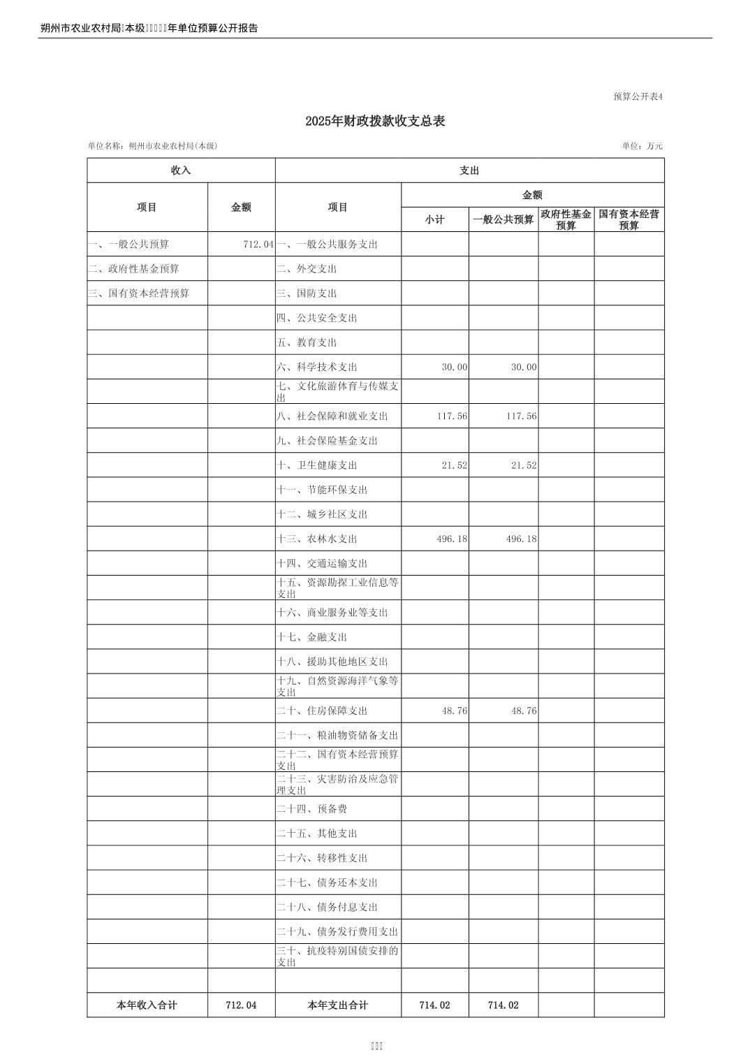 2025年朔州市农业农村局(本级)部门预算公开
