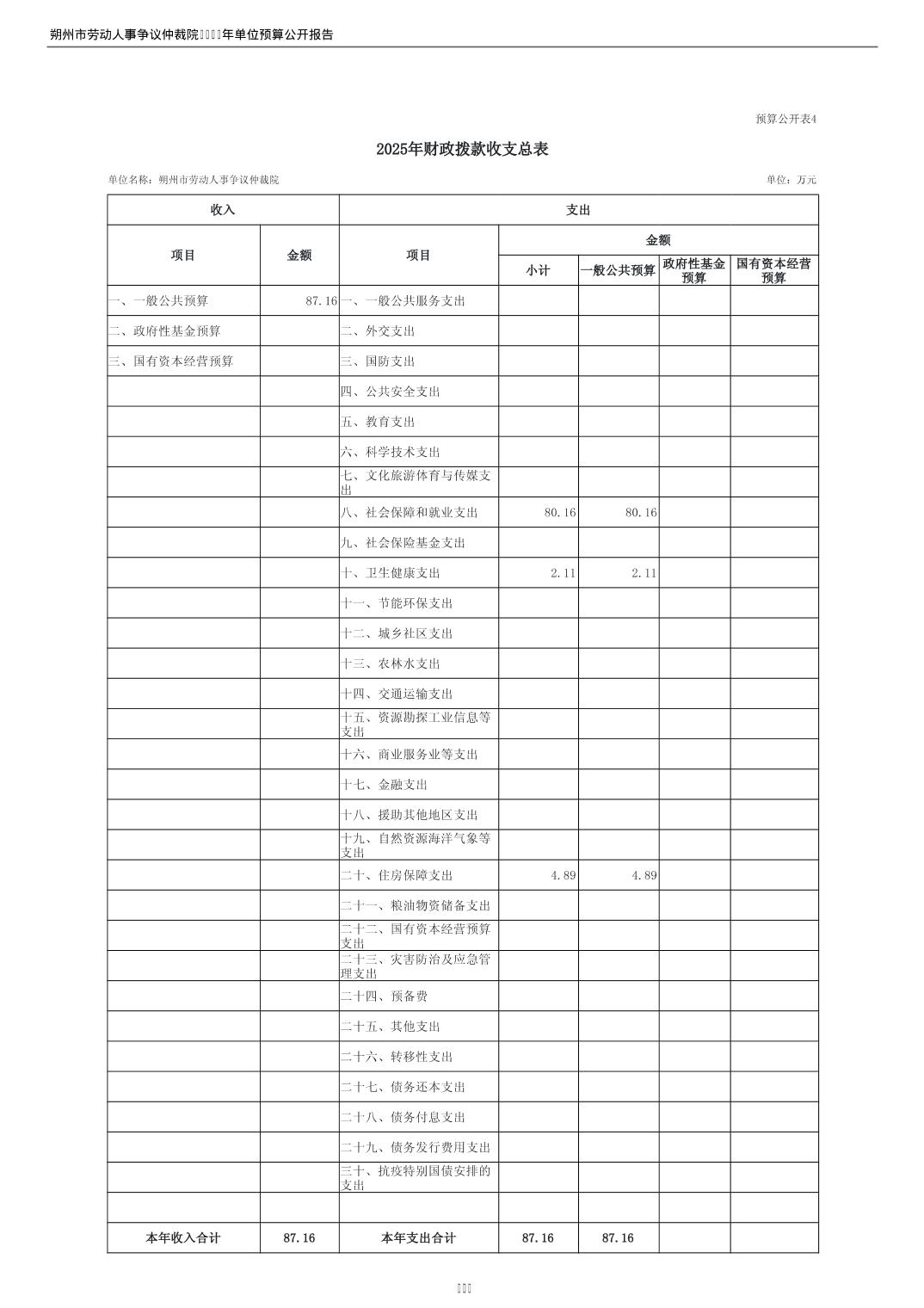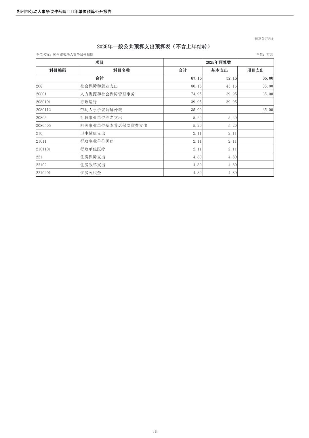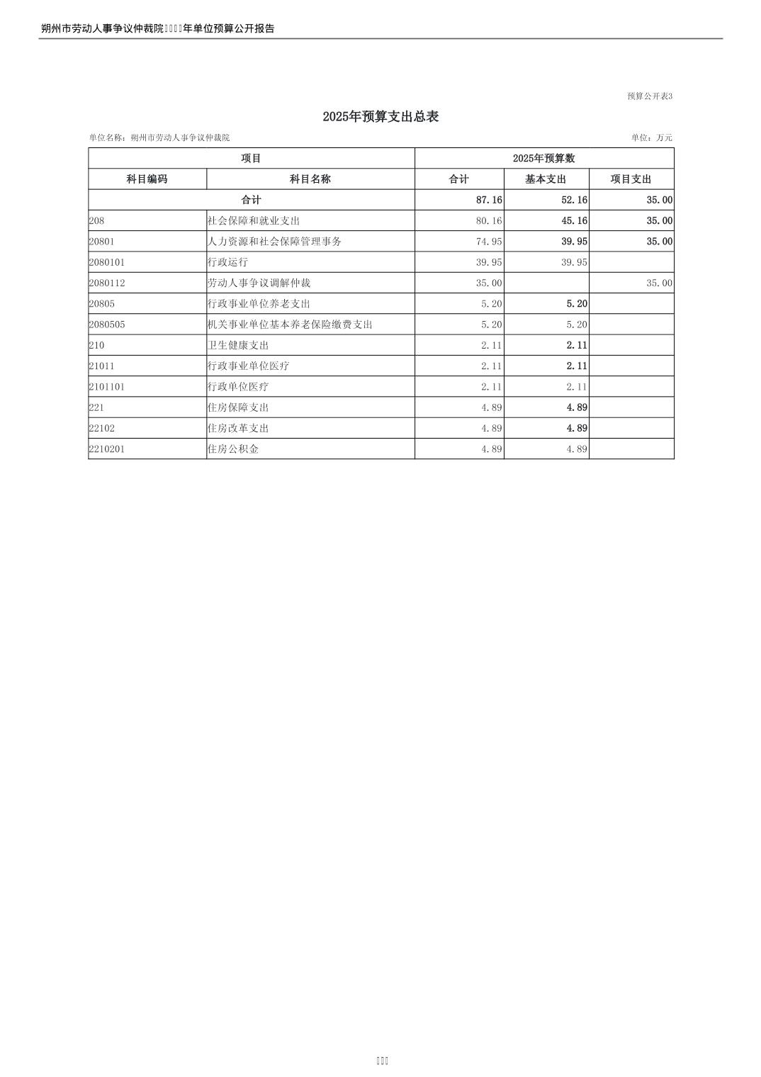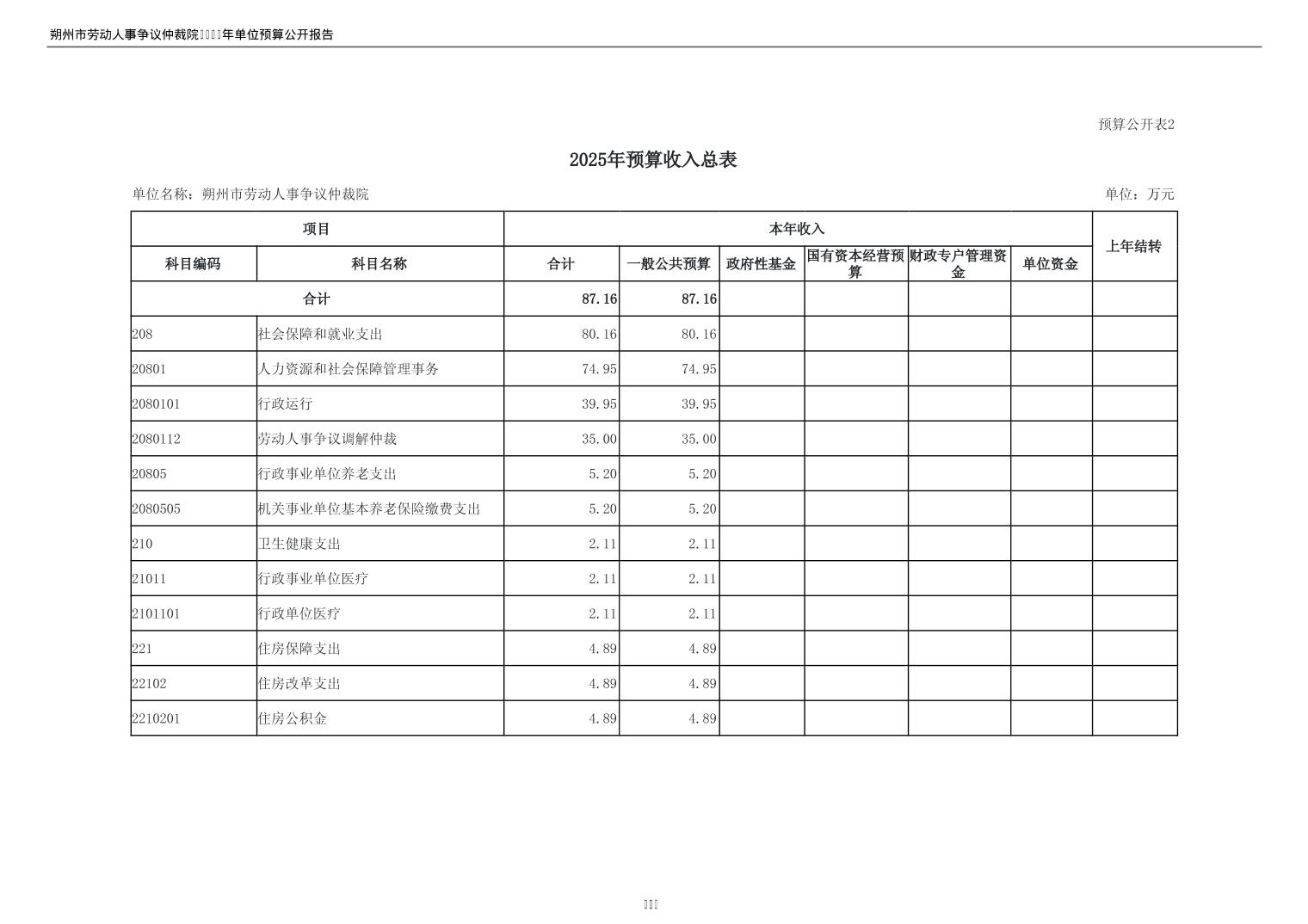 朔州市人力资源和社会保障局2025年度部门预算公开(劳动人事争议仲裁院)