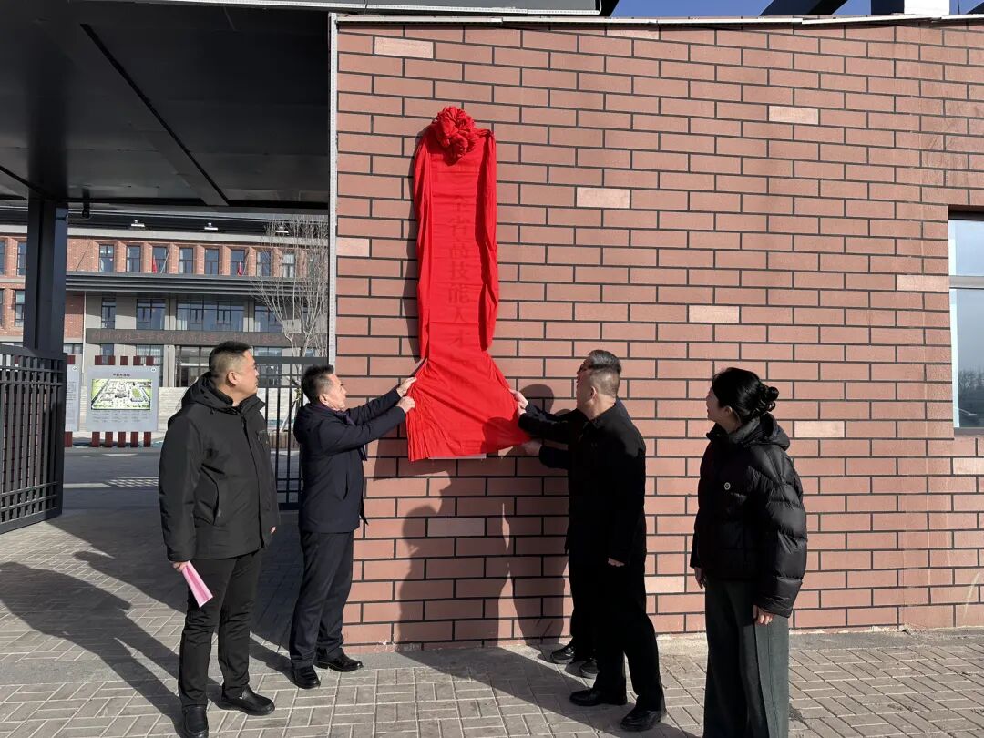 校领导与教职工代表共同为 “省级高技能人才培训基地” 揭牌,红绸落下,标志着学校高技能人才培养工作迎来新起点。