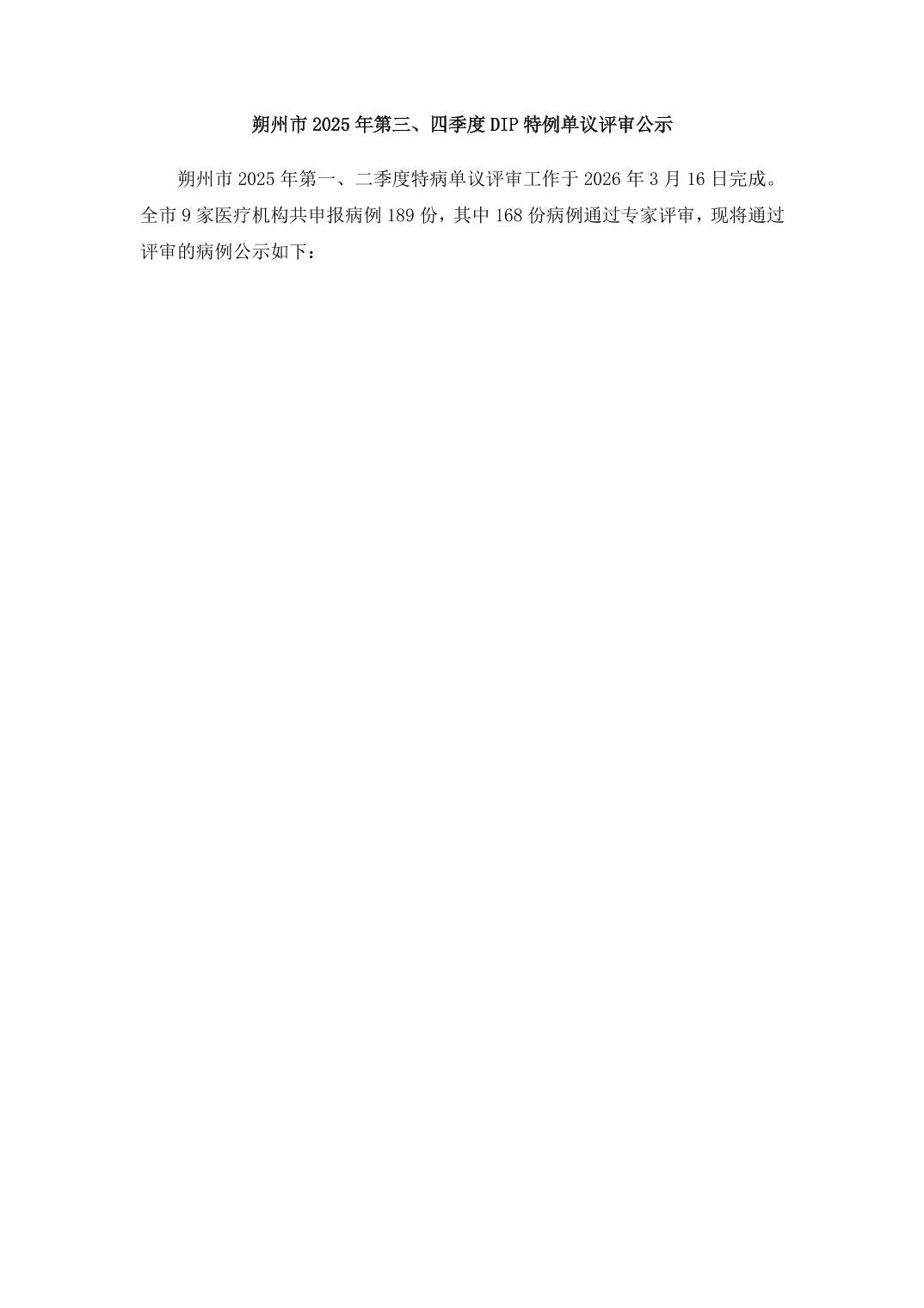朔州市2025年第三、四季度DIP特例单议评审公示