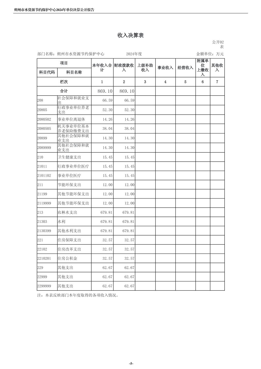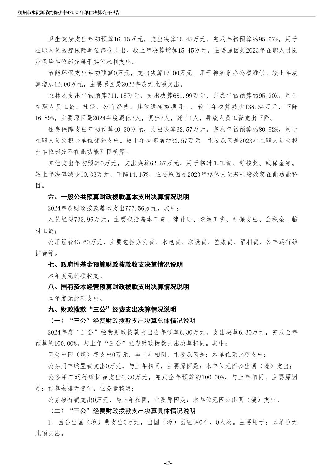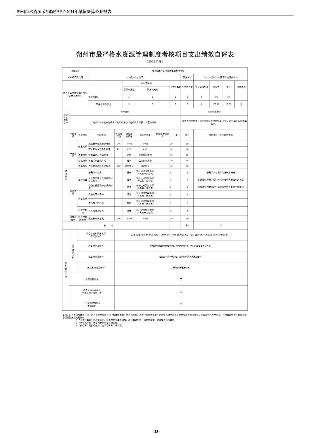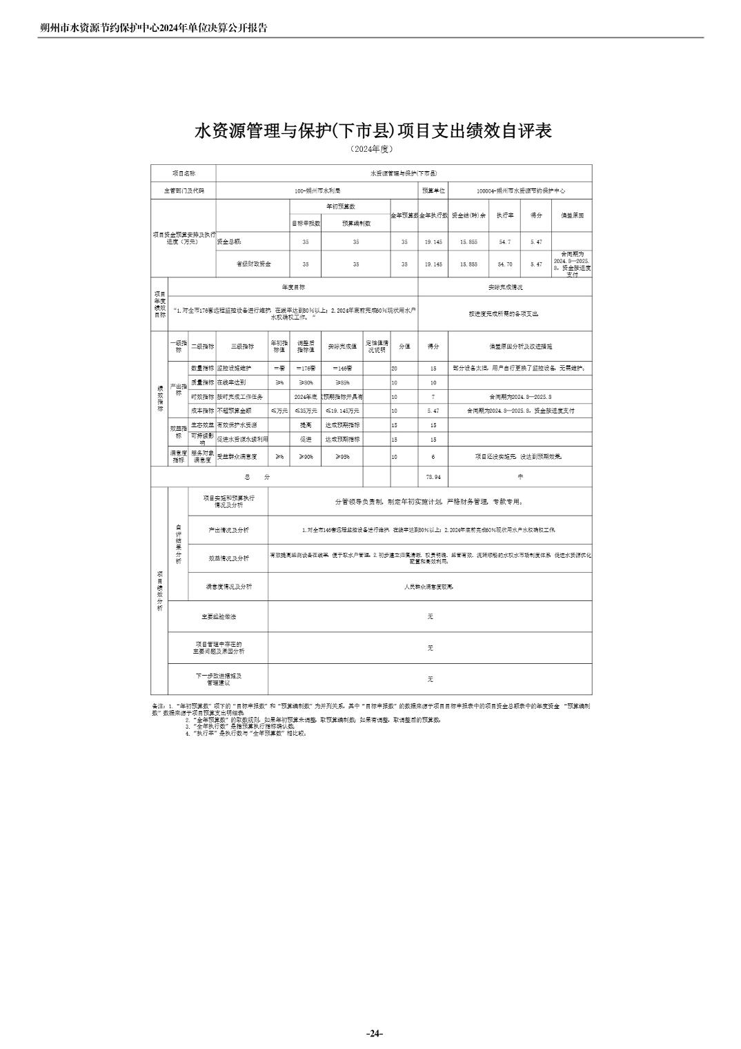2024年度朔州市水资源节约保护中心单位决算公开报告
