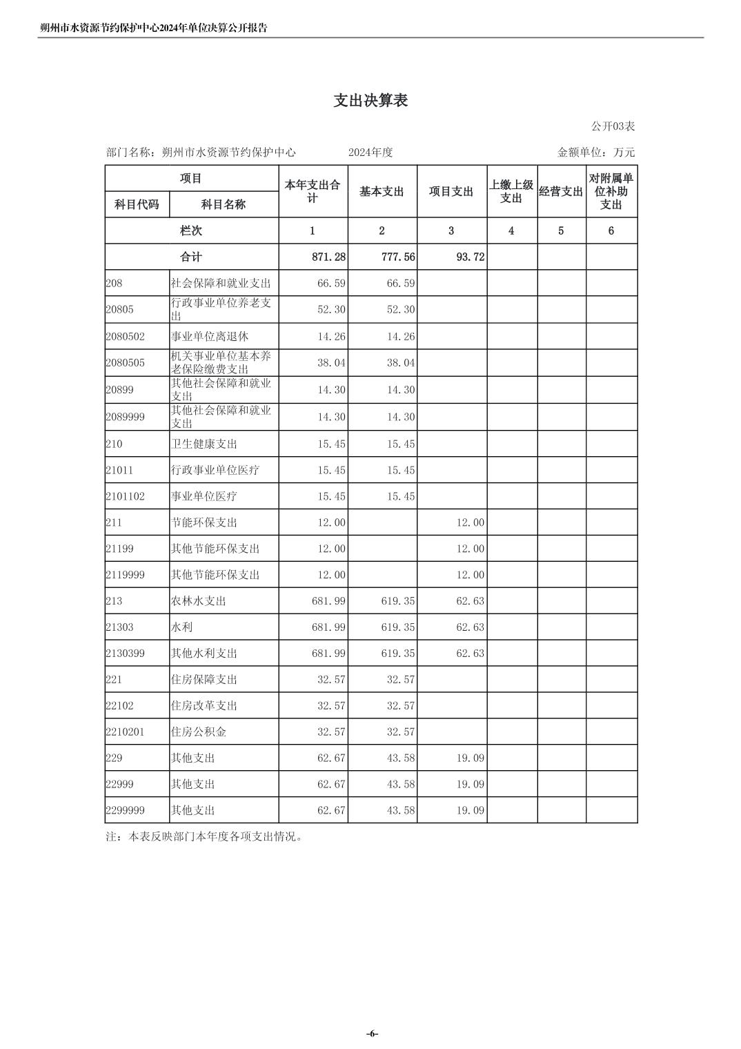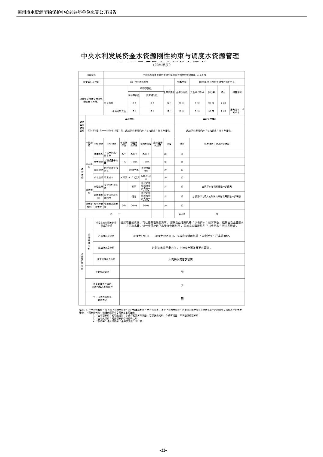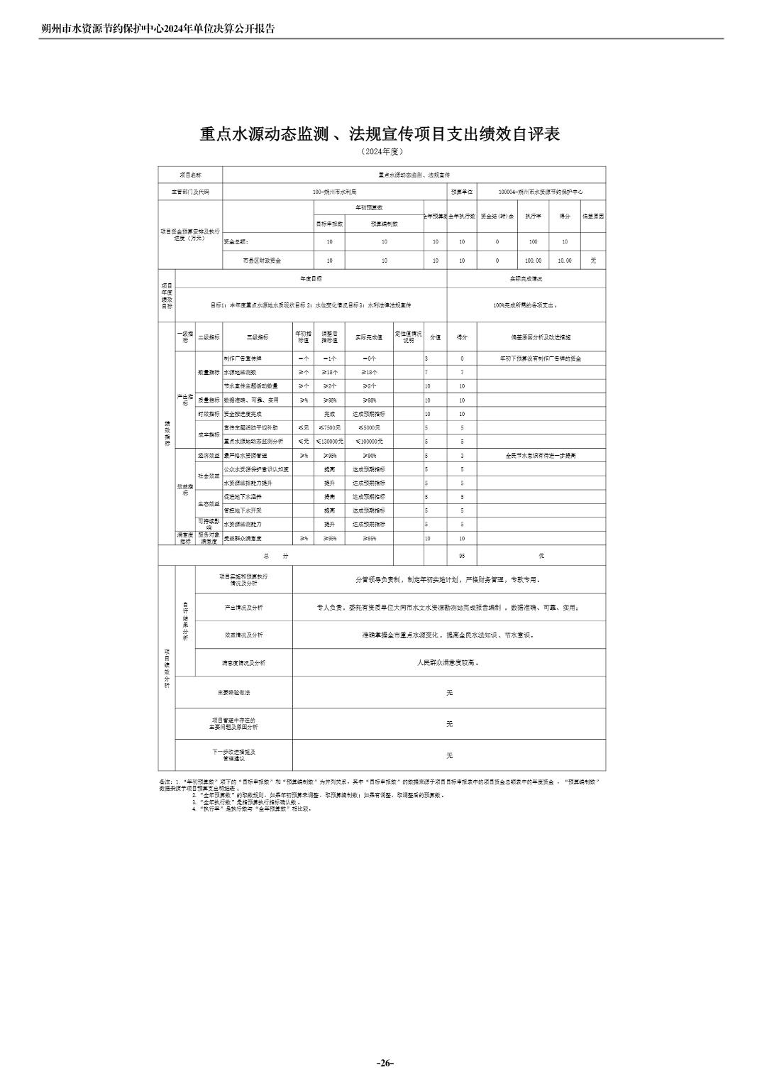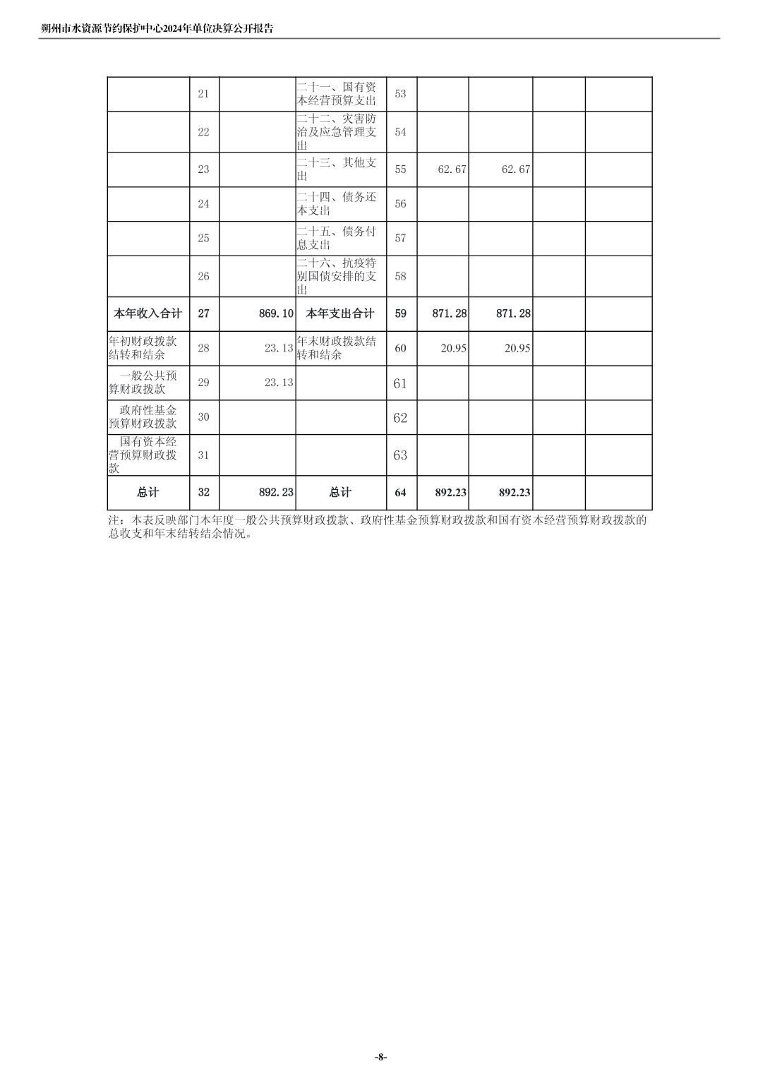 2024年度朔州市水资源节约保护中心单位决算公开报告