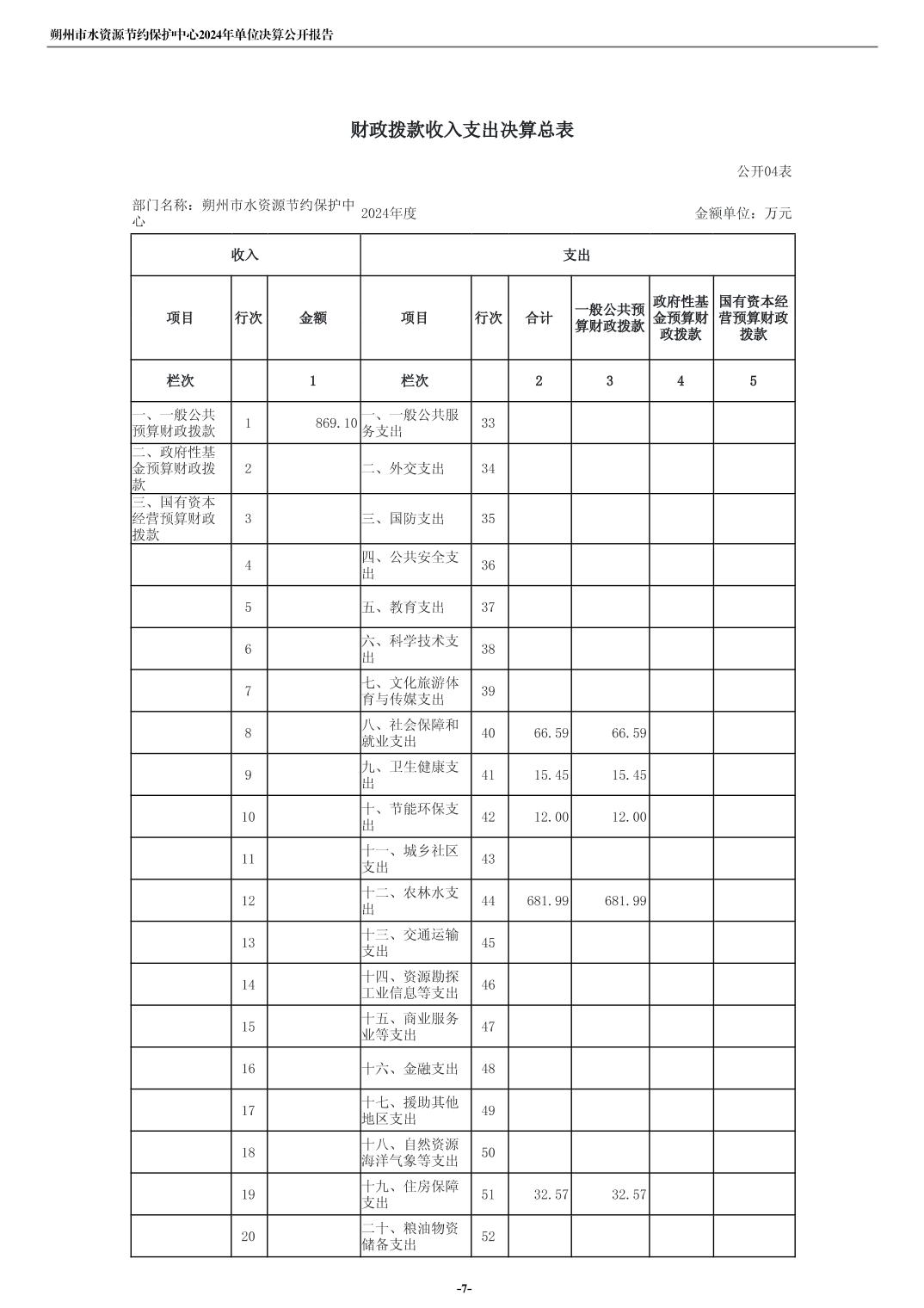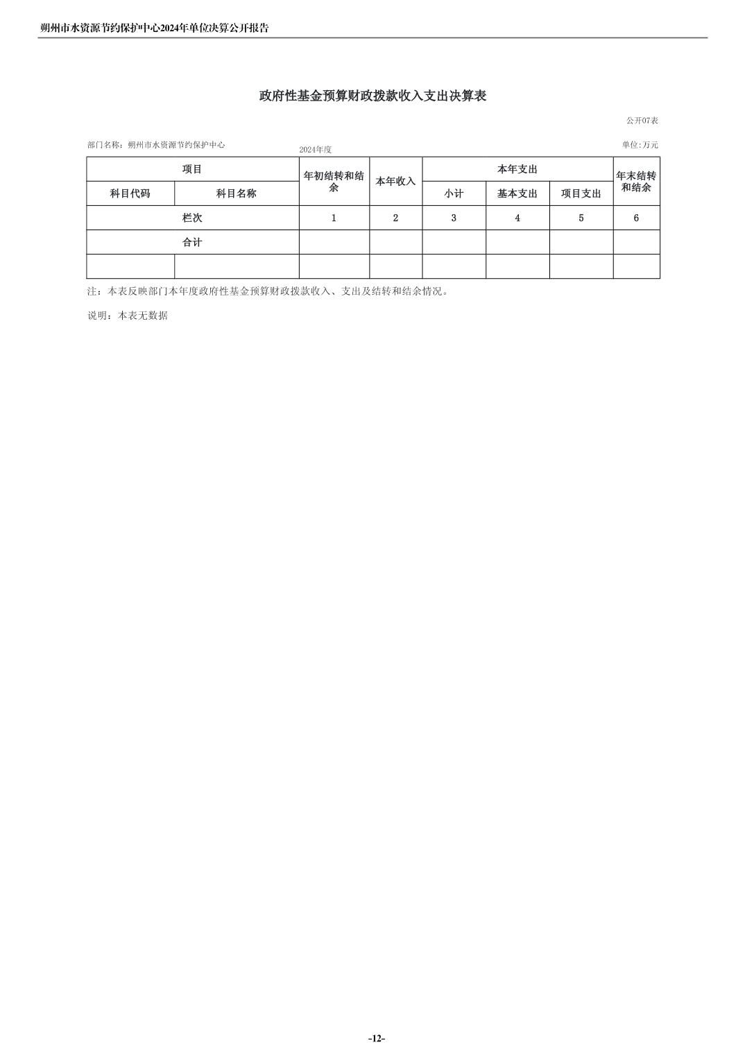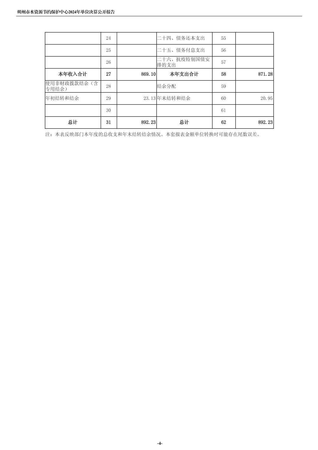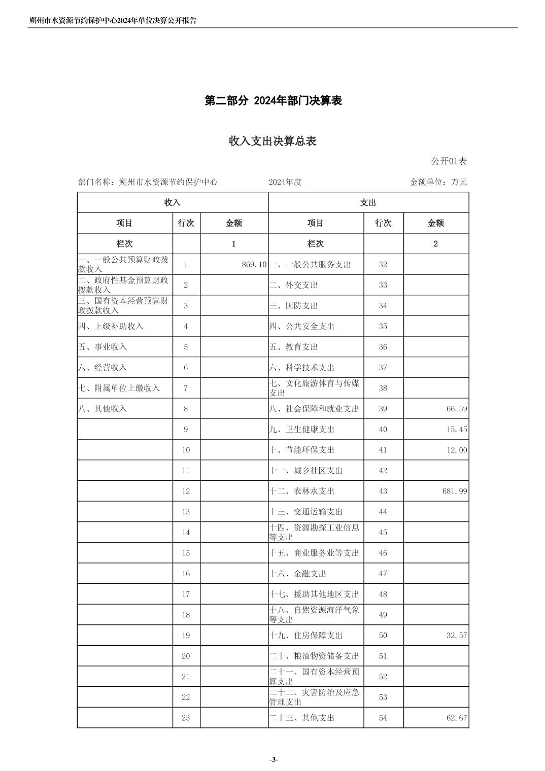 2024年度朔州市水资源节约保护中心单位决算公开报告