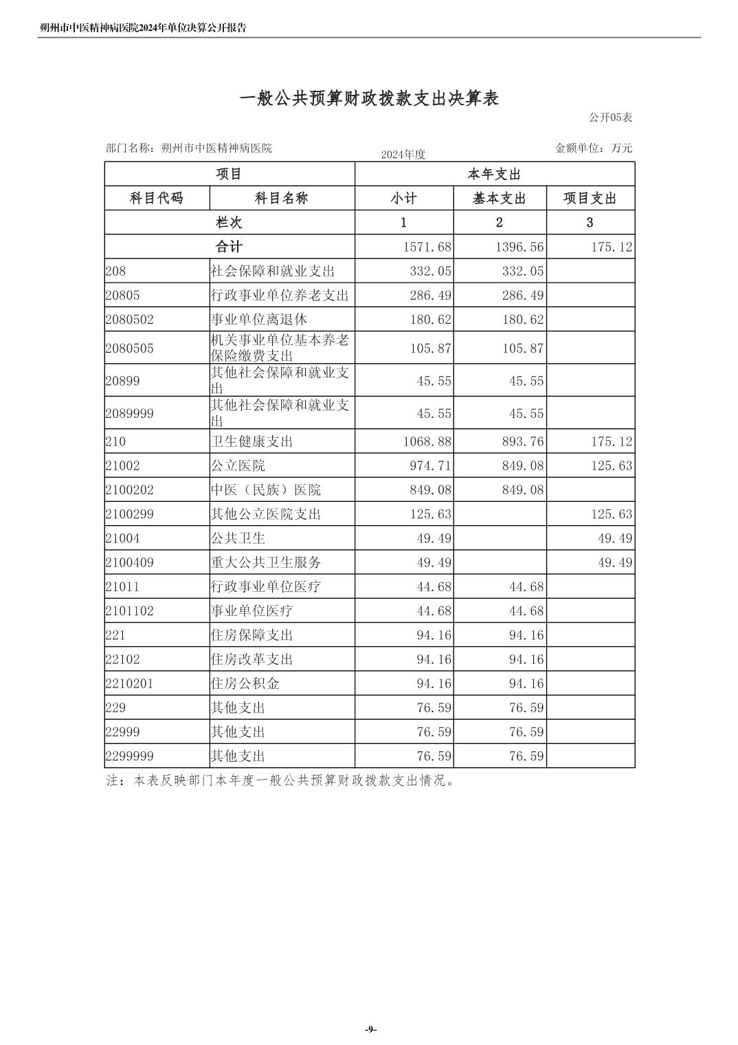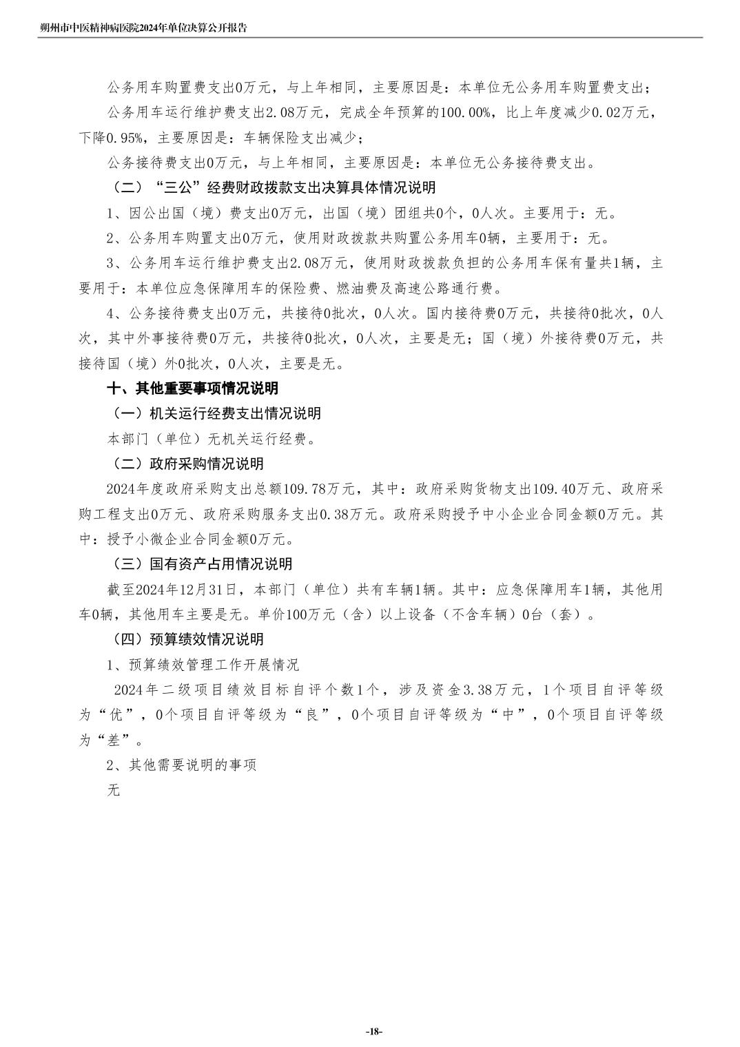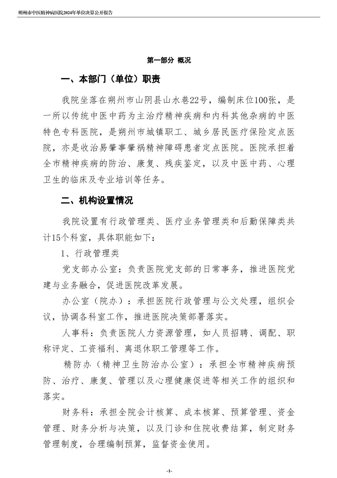 朔州市中医精神病院2024年度单位决算公开
