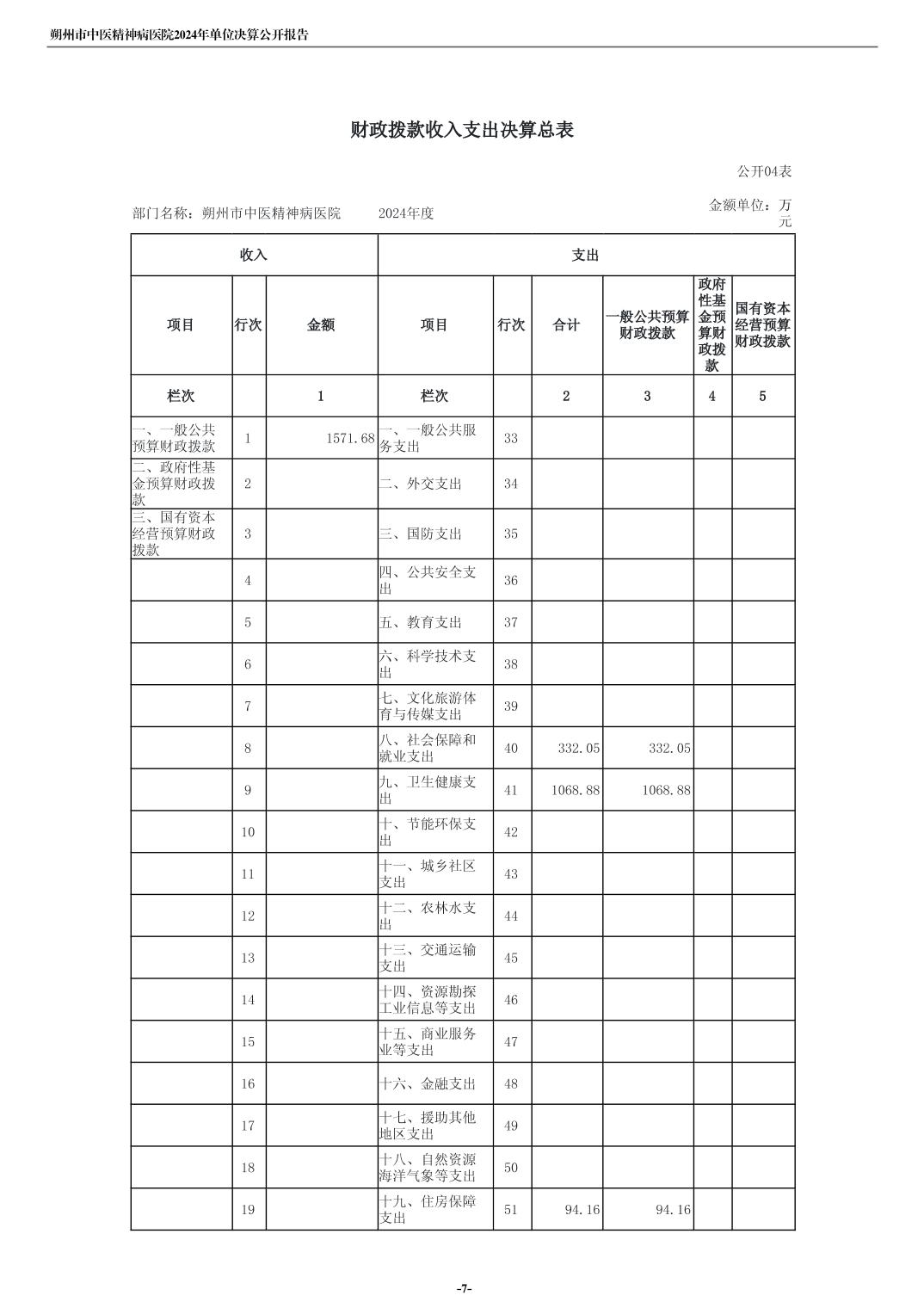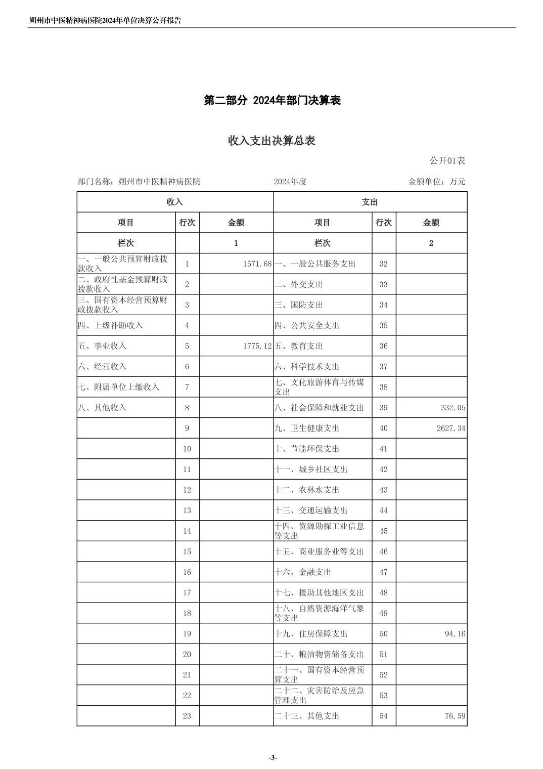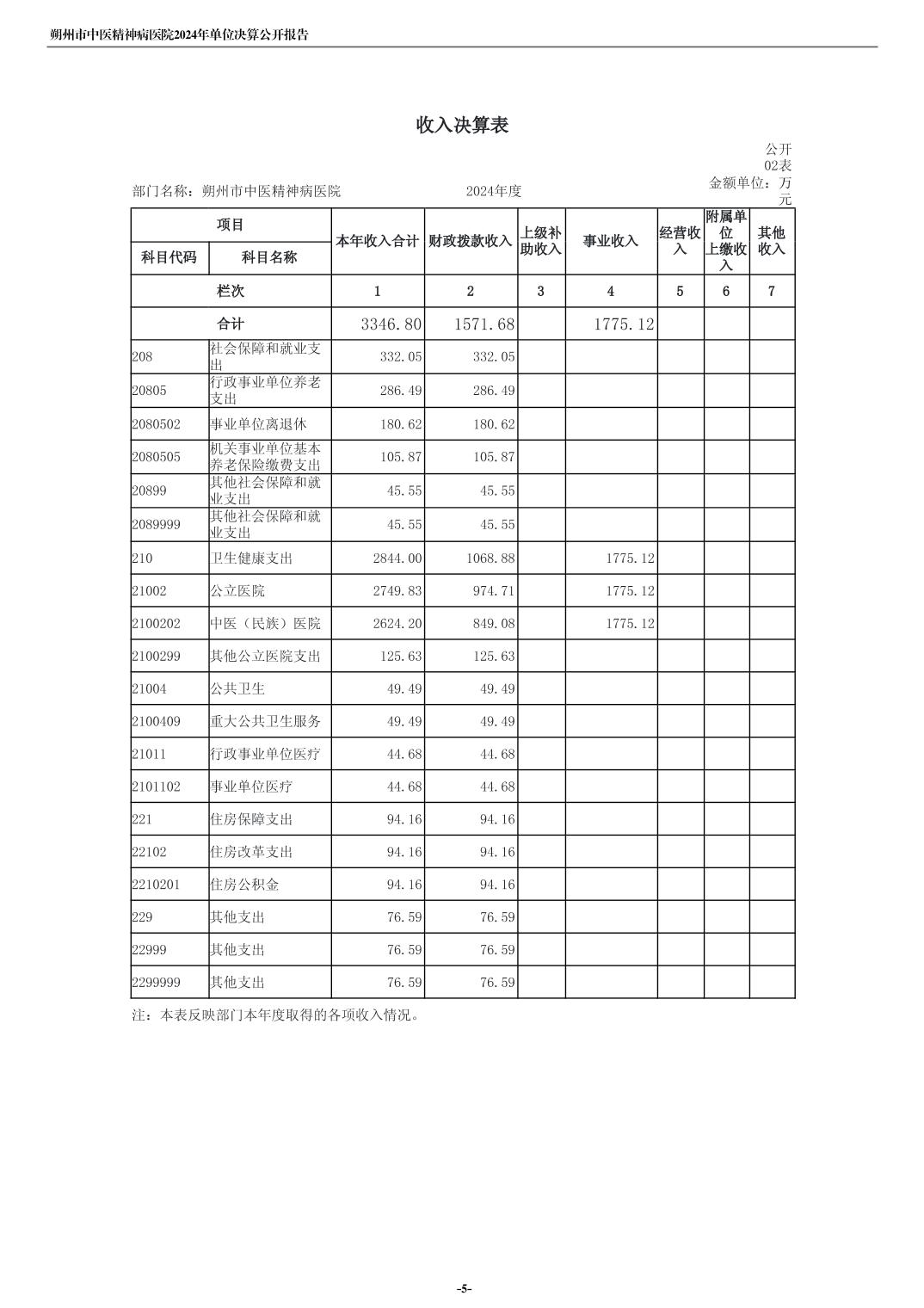 朔州市中医精神病院2024年度单位决算公开