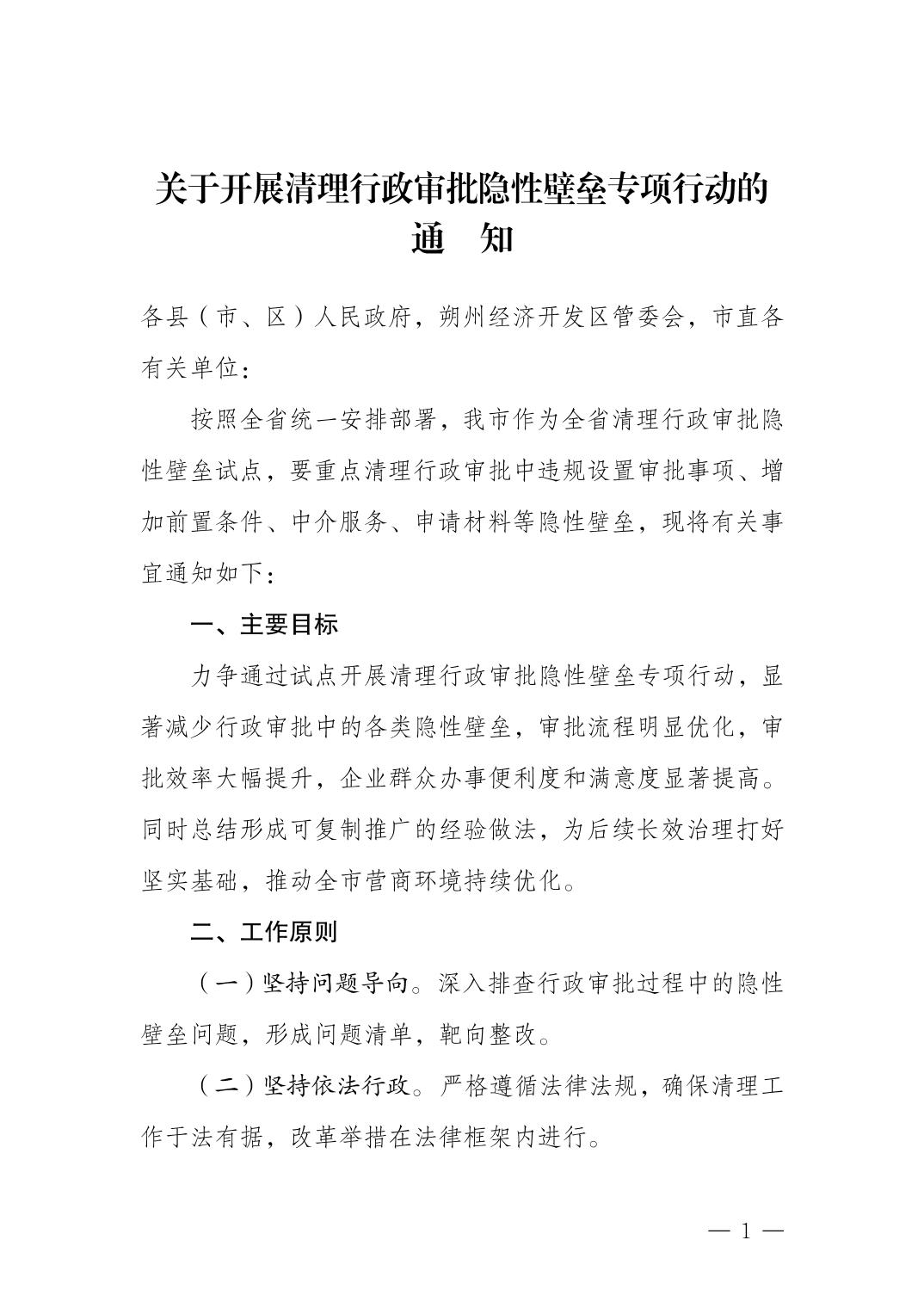 关于开展清理行政审批隐性壁垒专项行动的通知