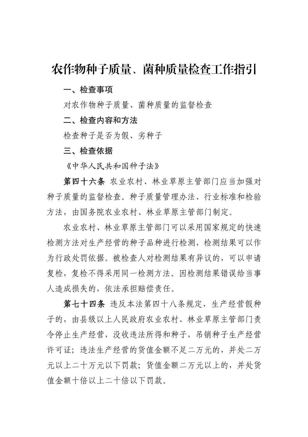 农作物种子生产、经营检查工作指引
