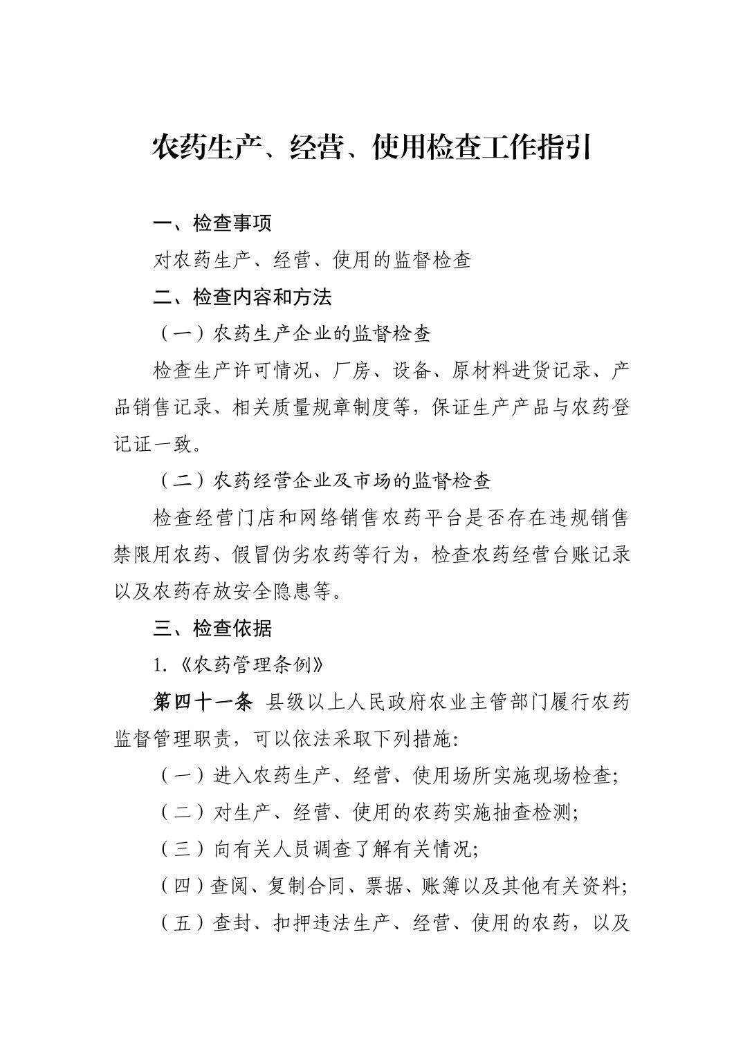 农药生产、经营、使用检查工作指引
