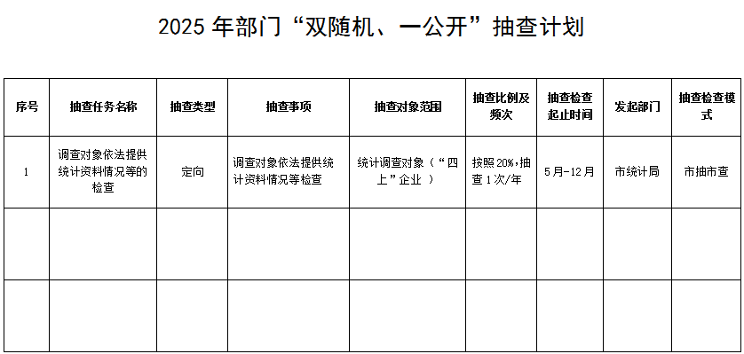 市统计局2025年部门“双随机、一公开”抽查计划