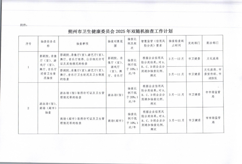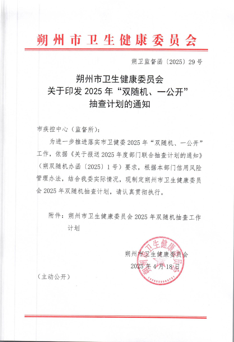 朔州市卫生健康委员会关于印发2025年“双随机、一公开”抽查计划的通知