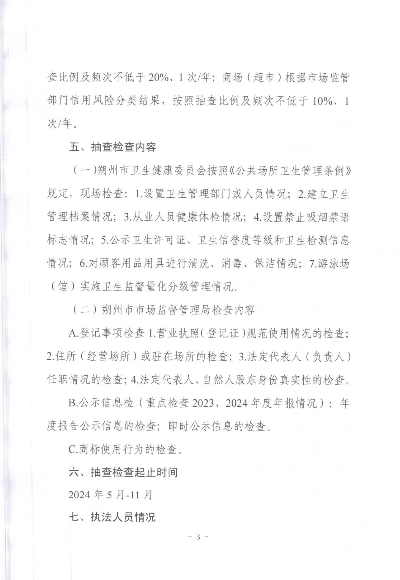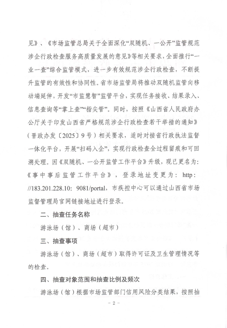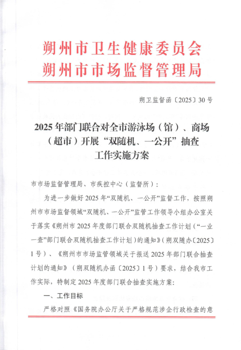 2025年朔州市卫健委与朔州市市场监督管理局两部门联合对全市游泳场(馆)、商场(超市)开展“双随机、一公开”抽查工作实施方案