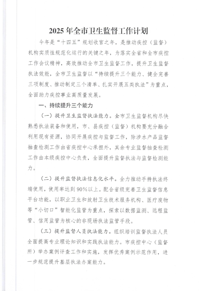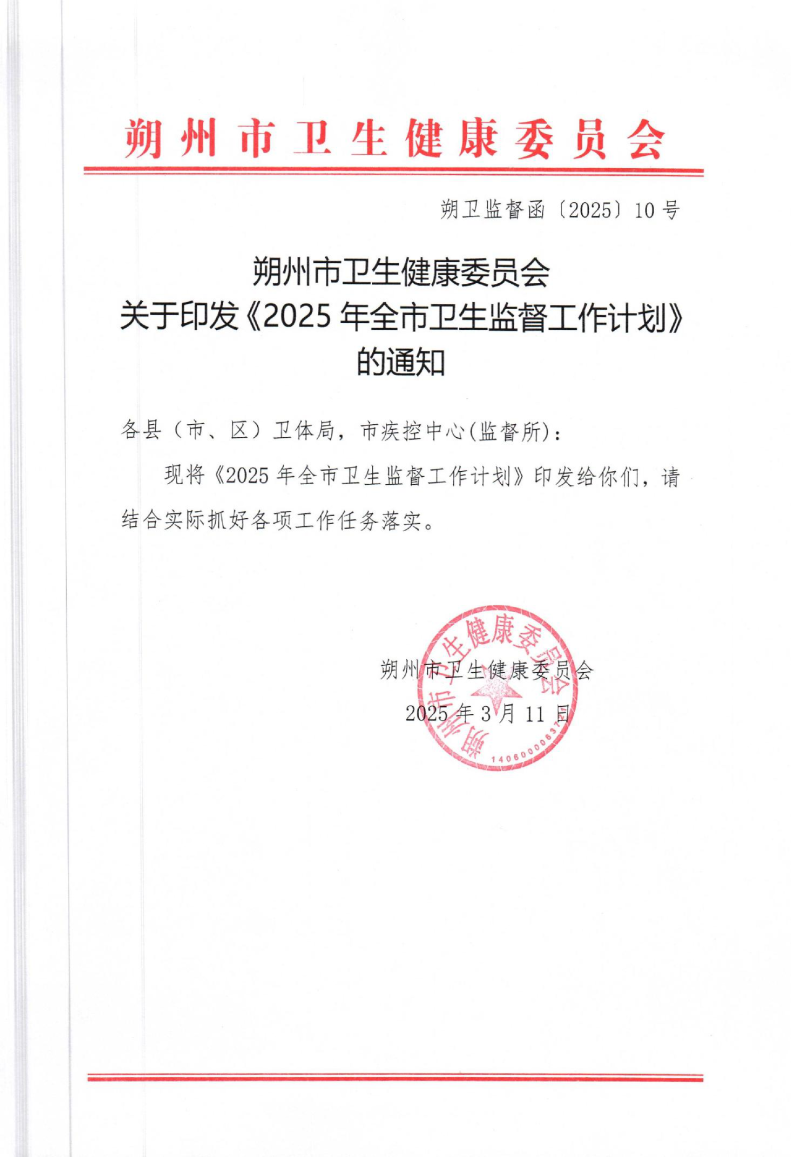 朔州市卫生健康委员会关于印发《2025年全市卫生监督工作计划》的通知》